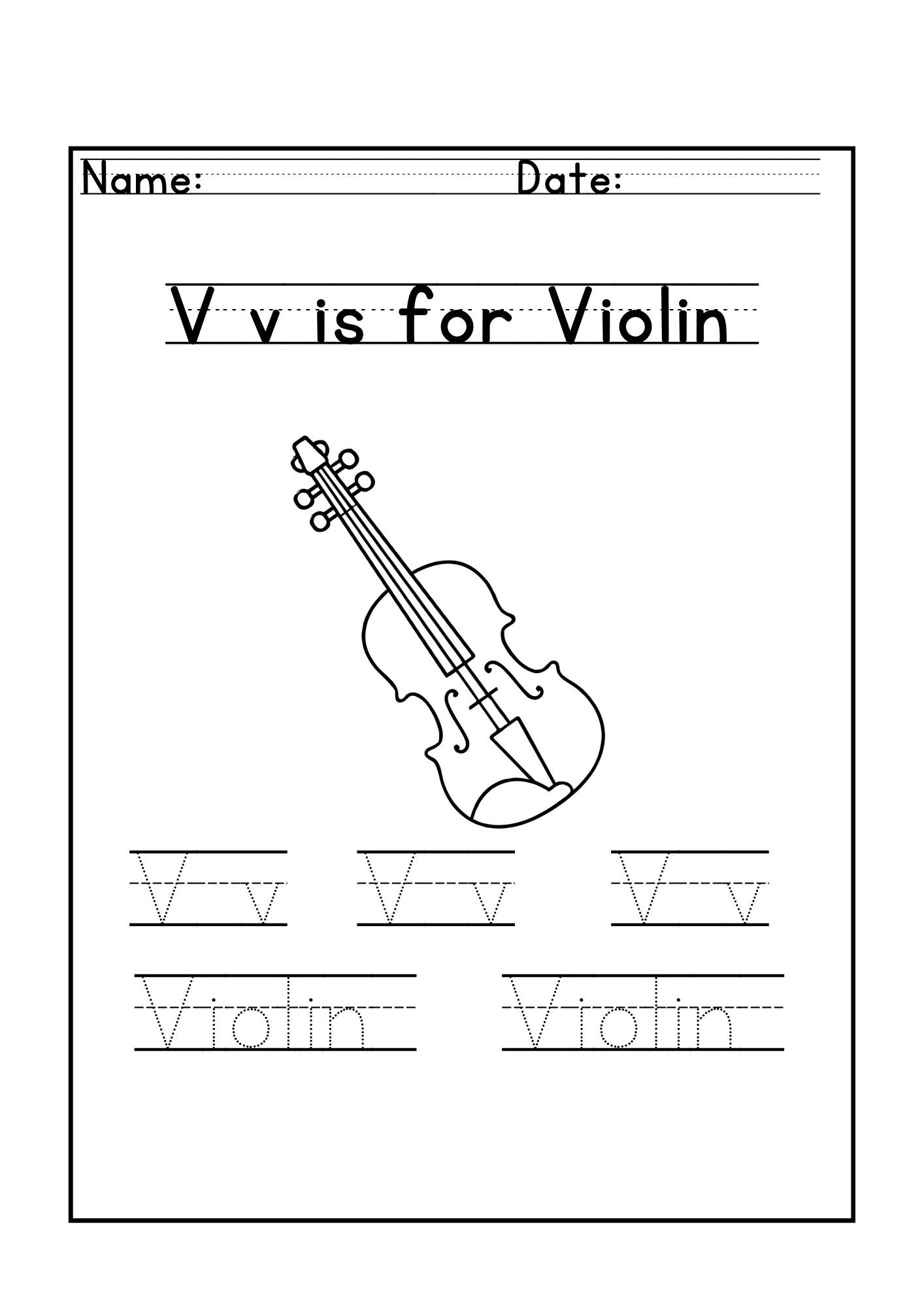 (ex: U is for Umbrella, V is for Violin, etc.)