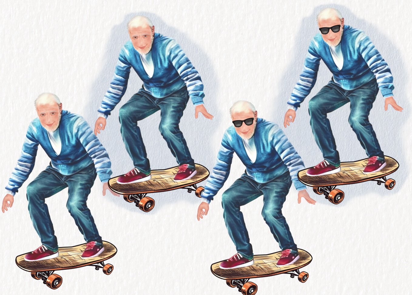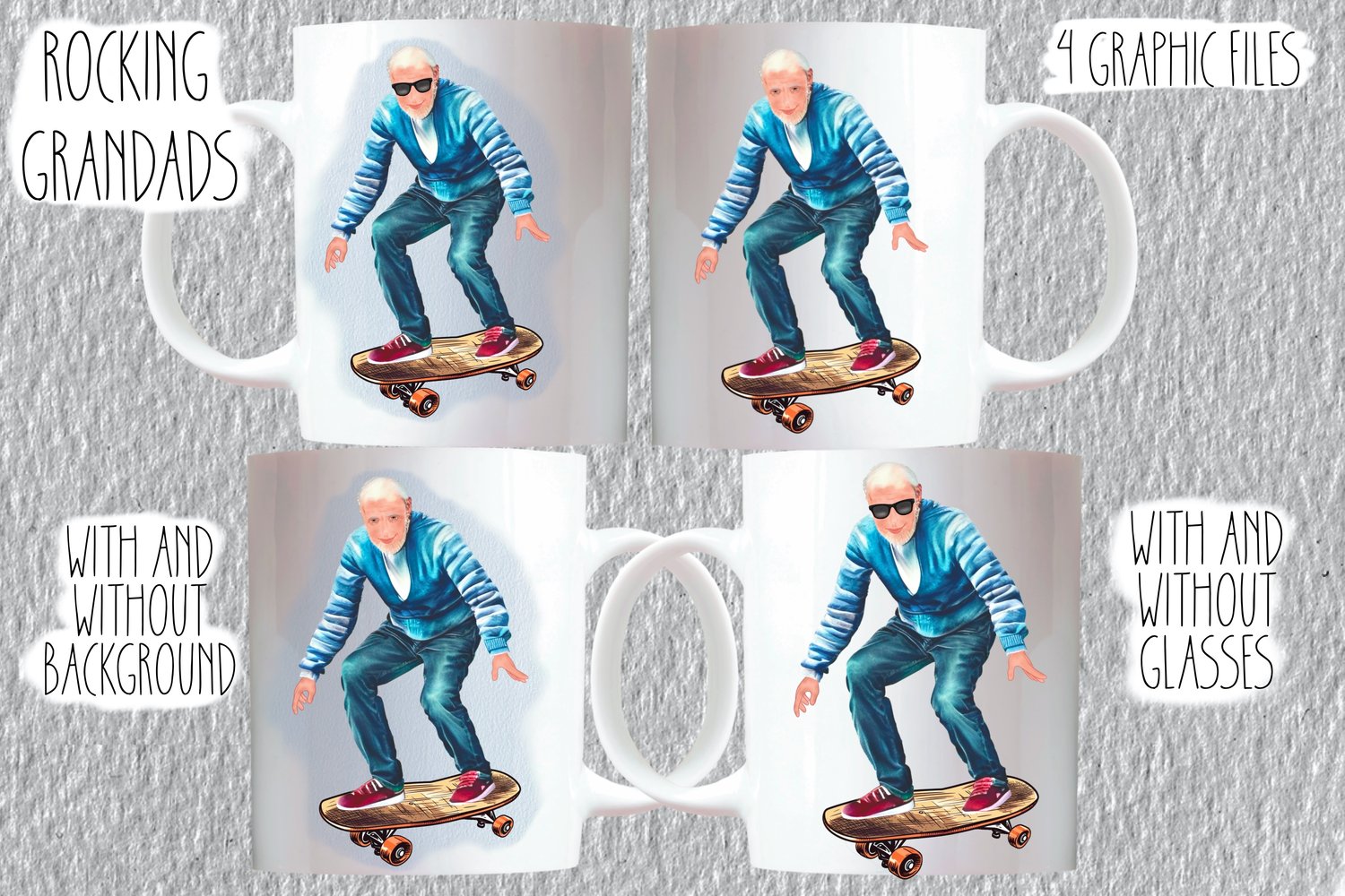 Skateboarding Grandad. 4 graphics plus 2 mock ups