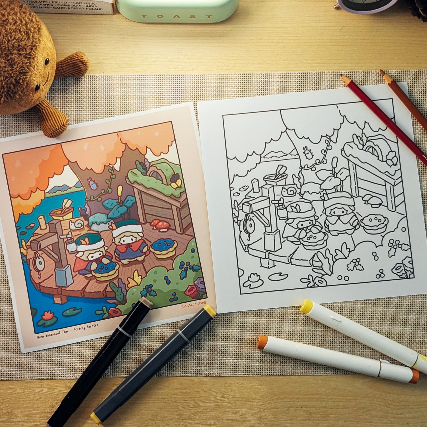 From snug little tree-house to cozy seasonal scenes, each page is designed to warm your days in the upcoming cold seasons. Warm Whimsical Time invites you to slow down and enjoy simple moments.