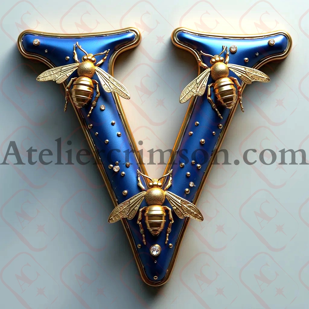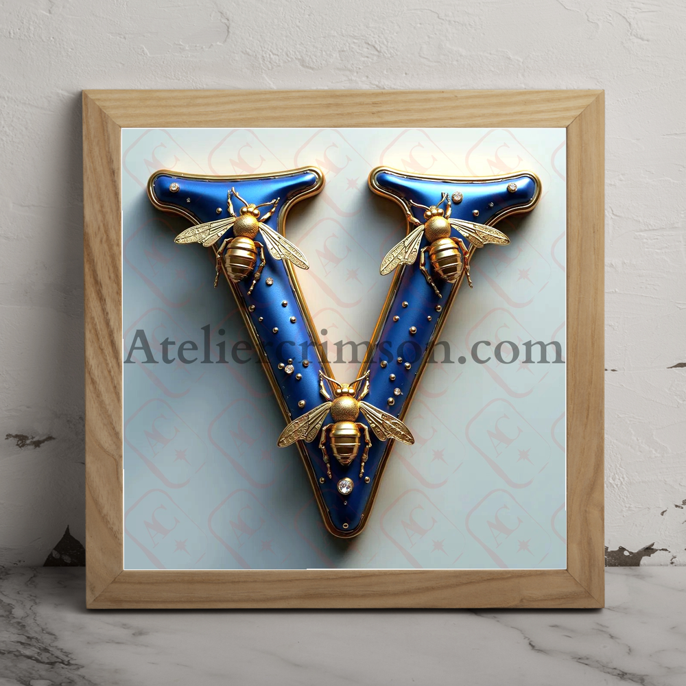 The letter V royal blue bees Download Now this high quality AI-generated image, perfect for adding a touch of tranquility and creativity to any space.