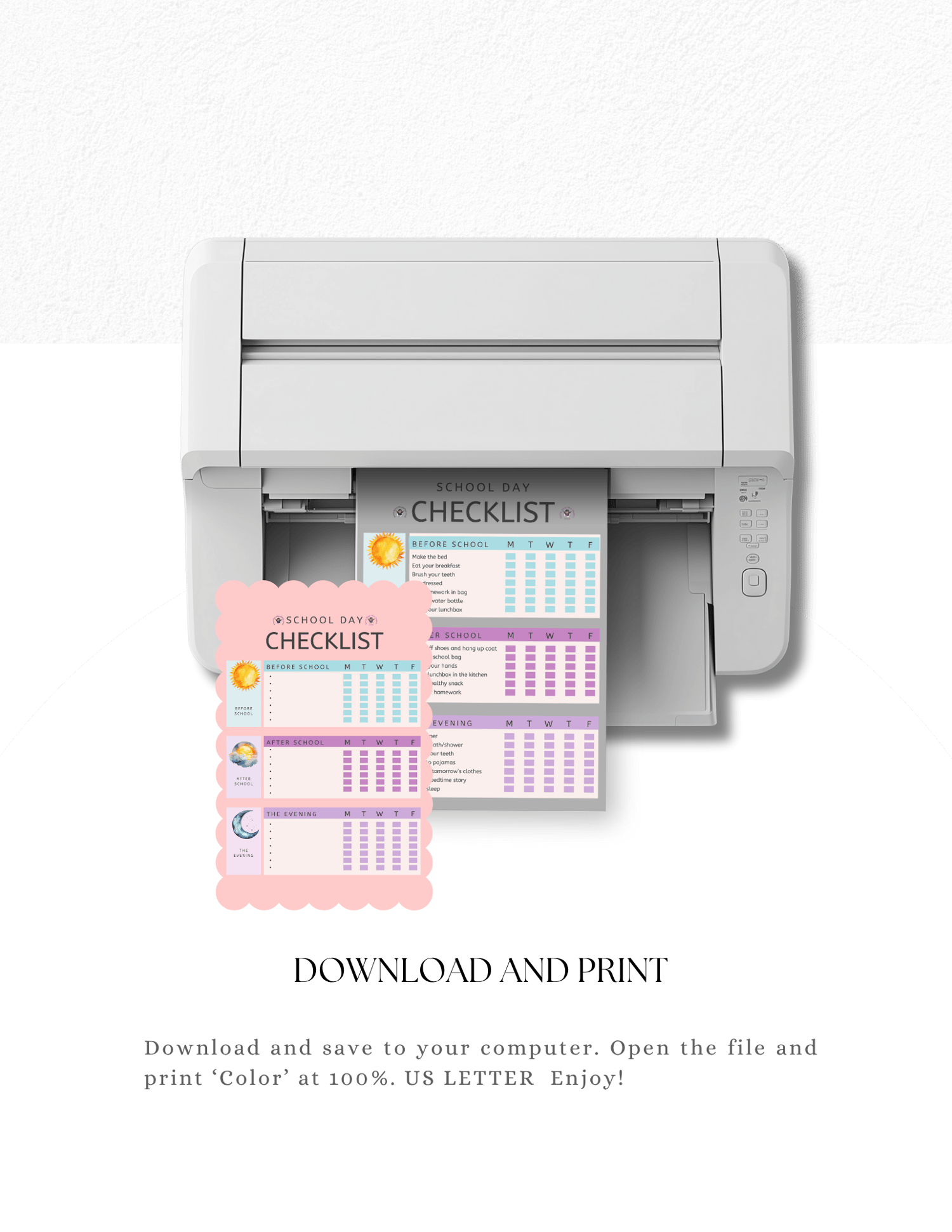 🏫 School Day Checklist | Printable Morning, After School & Evening Routine Chart for Kids | Daily Visual Schedule PDF