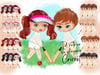 Cricket Chibi dolls, 12 each boy and girl, hair and eye colour options. Separate background and text files.