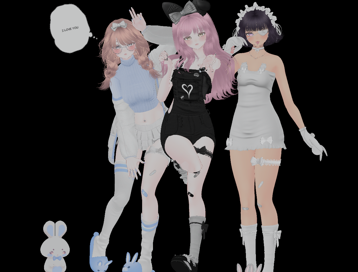 โฅBody โฅEyes Texture โฅHead Resculpt (commissioned) โฅHead Textures 1/2 โฅPantsโฅCardiganโฅTurtleneckโฅDress1โฅDress2โฅSafety ShortsโฅSuspendersโฅBig SweaterโฅShortsโฅTop and SkirtโฅArm WarmersโฅLong SocksโฅShort SocksโฅEyePatchโฅChokerโฅGarterโฅHair BowโฅGlassesโฅBunnyHeadBandโฅRuffledHeadBandโฅNailsโฅBandaidsโฅRingsโฅNcklaceโฅEarringsโฅEarsโฅTailโฅBellyPiercingโฅSleepyMaskโฅShoesโฅSlippersโฅHair 1โฅHair 2โฅHair 3โฅHair 4โฅHair 5โฅBangs 1โฅBangs 2โฅBangs 3โฅBangs 4โฅHeart ParticlesโฅBunny BiteโฅCam's BlinkโฅThought BubblesโฅHeart BakeryโฅBunny Follower