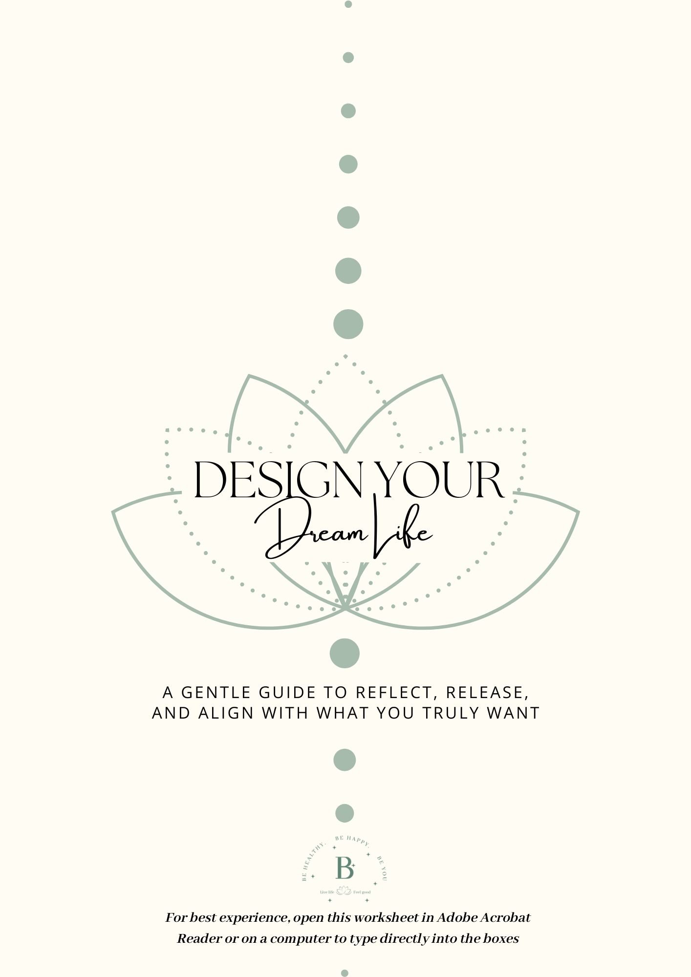Design Your Dream Life - a gentle, 2-page worksheet to help you pause, reflect, and connect with what you truly want. Visualise your ideal day, explore how you want to feel, uncover what matters most, release what's no longer serving you, and take one gentle shift this week to move closer to your dreams.