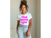 African American Woman Smiling Wearing White T-shirt Mockup Digital Download with Gray Background