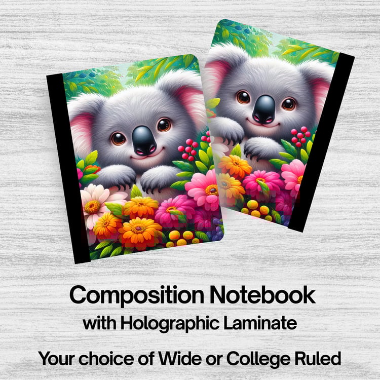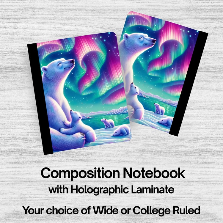 Holographic Laminated Composition Notebook. These make great gifts or to use for journaling or for school. Your choice of either Wide or College Ruled.