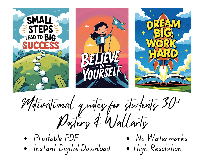 Motivational Quotes for Students – 30+ Inspiring Posters & Wall Arts | Printable PDF | Instant Download | High-Resolution Decor