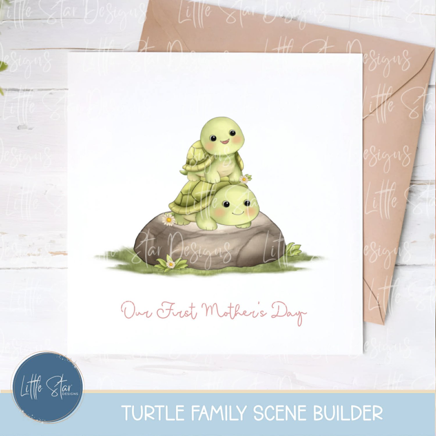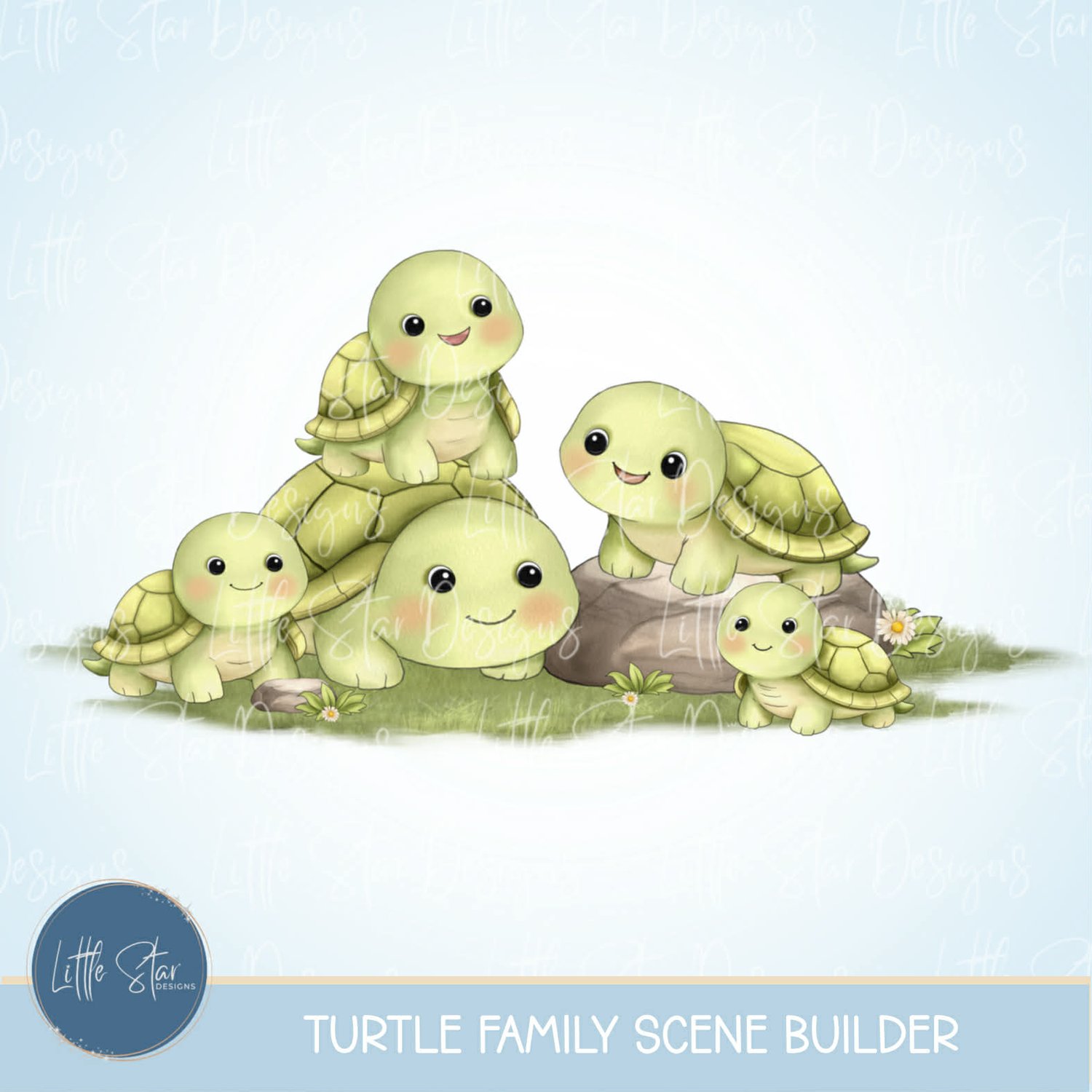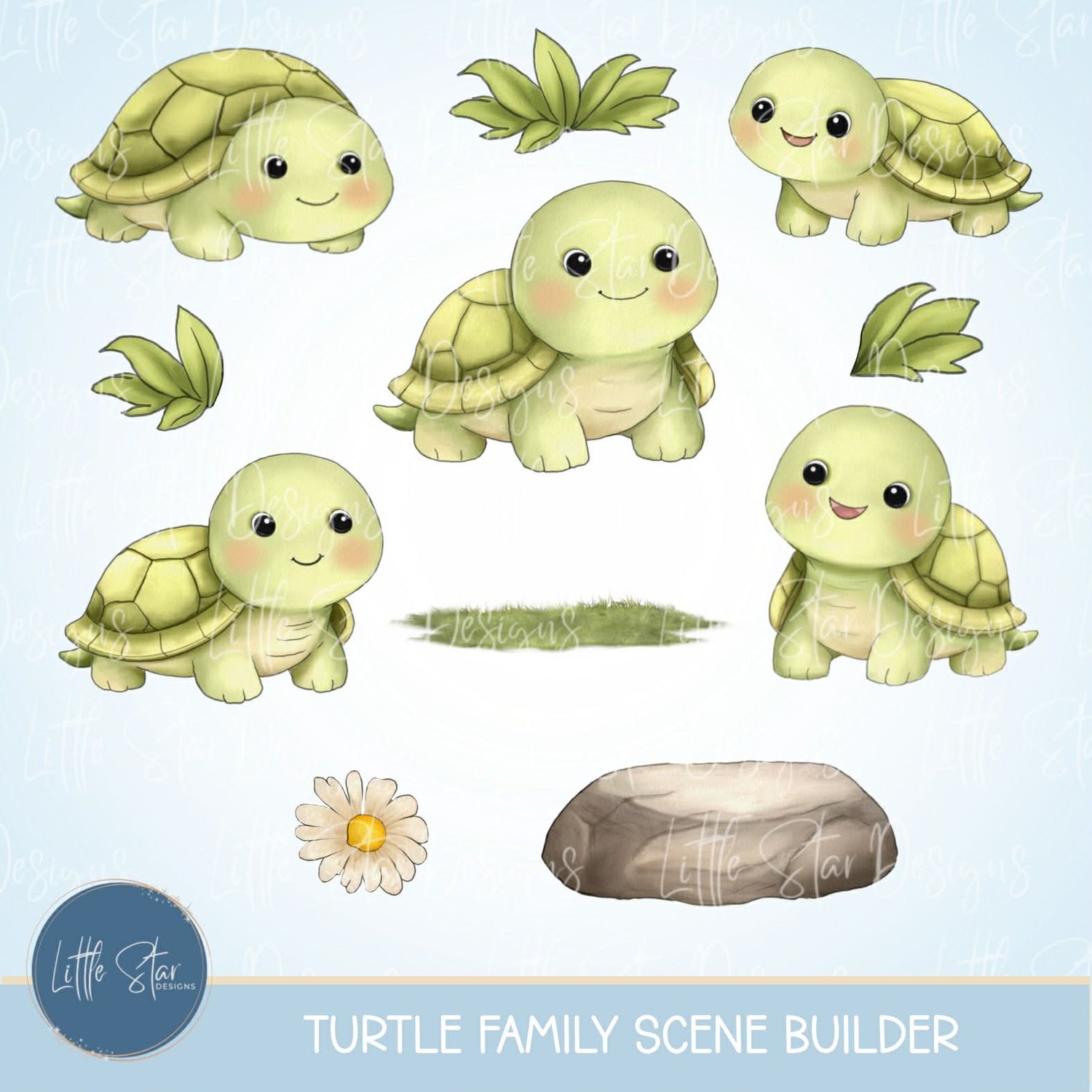 This is a high-quality hand drawn (300dpi PNG) clipart set digital download of my original artwork, titled “Turtle Family Scene Builder”, designed for sublimation and print.