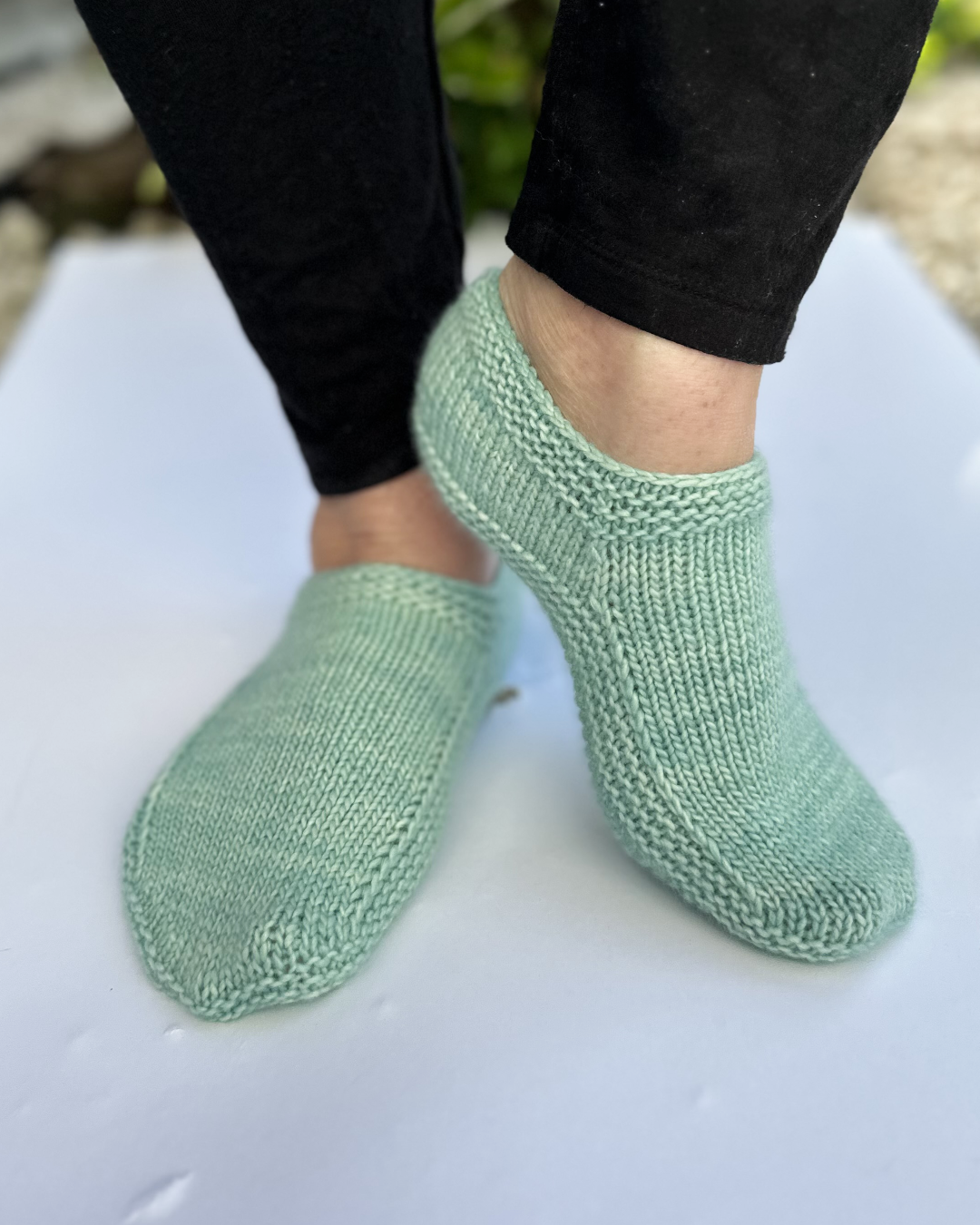 The Waterway Slippers are knit in one piece with no seaming or grafting required, just two ends to weave in on completion. Knit from the sole up starting at the heel with short rows incorporated throughout to shape the slipper for comfort and fit.