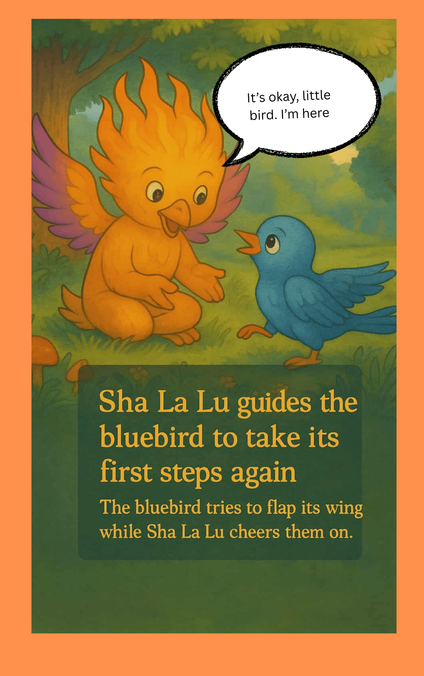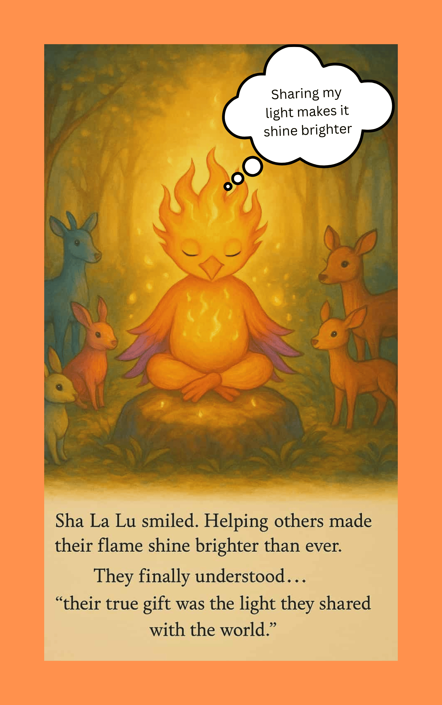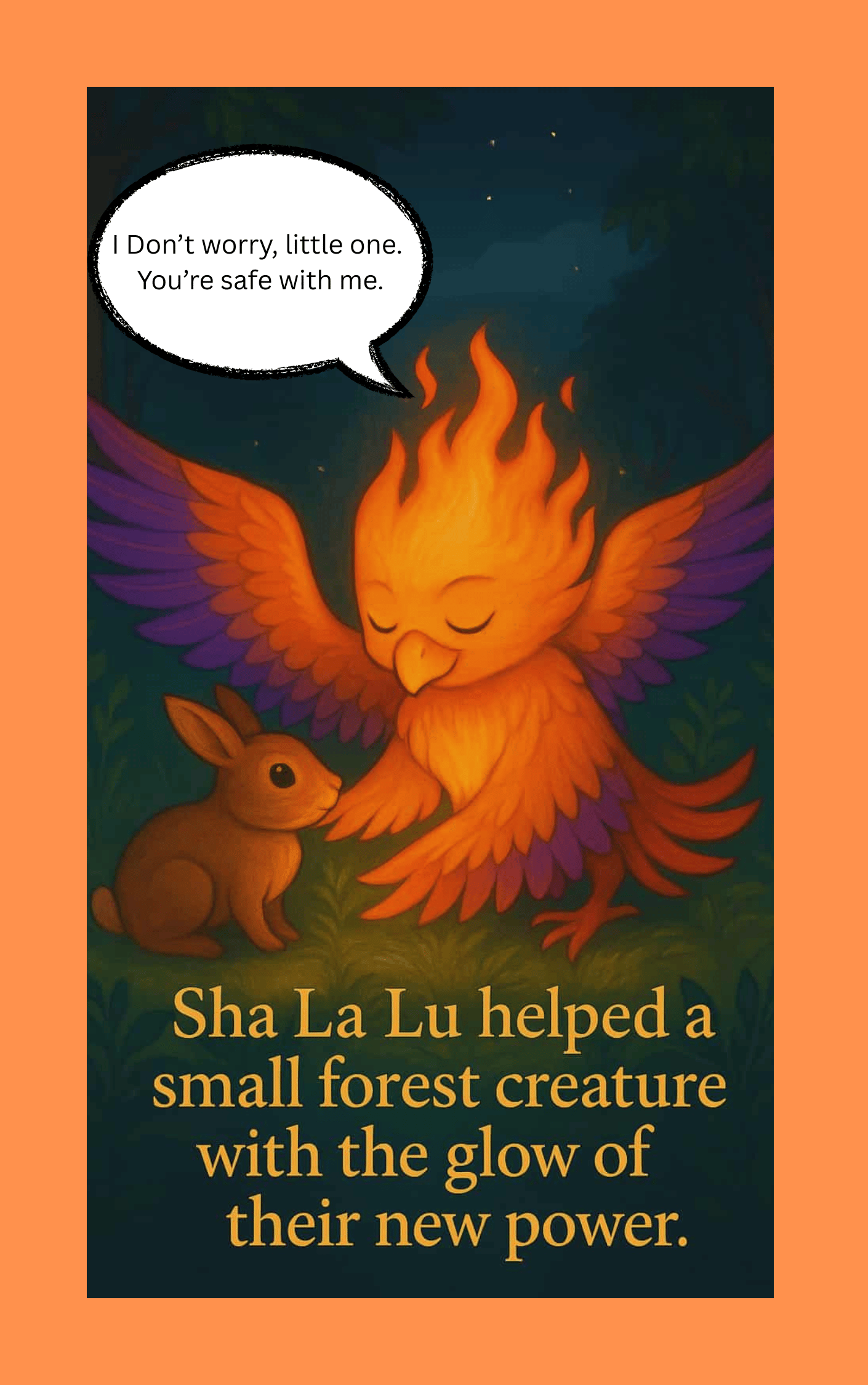 Deep in a peaceful forest lives a tiny glowing phoenix named Sha La Lu, born with a warm, golden light that flickers gently from their feathers. Unsure of their true power, Sha La Lu begins a heartfelt journey to discover what their light really means.