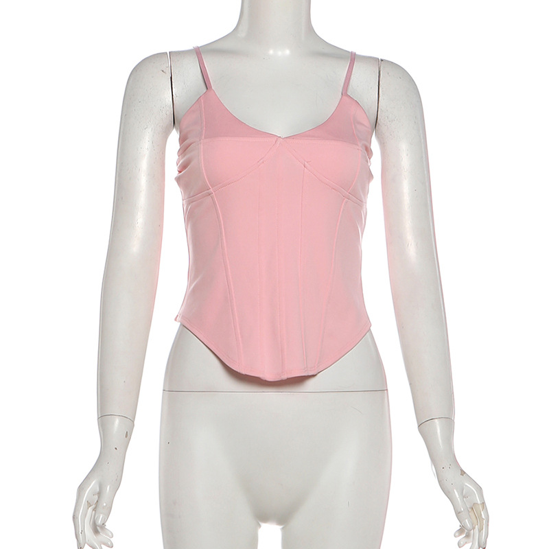French court coquette style pink slim camisole pencil mini skirt set