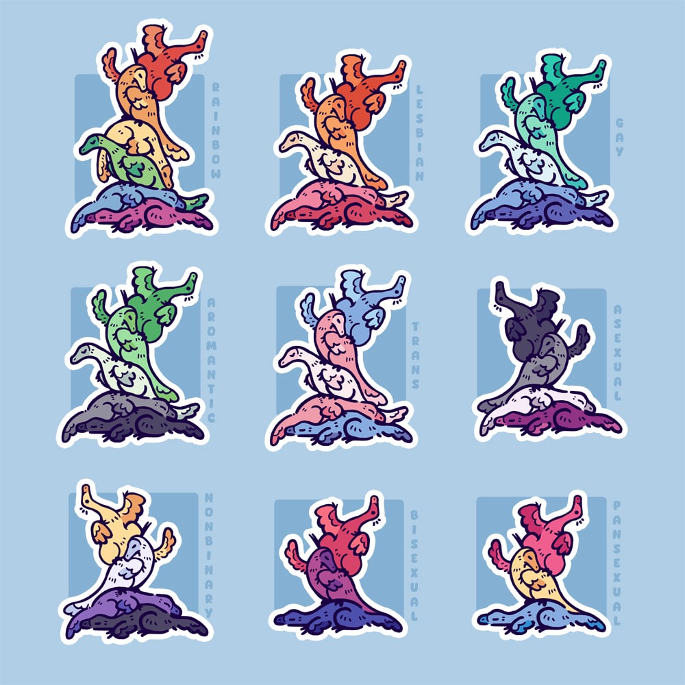 Nine different LGBT themed stickers are available: