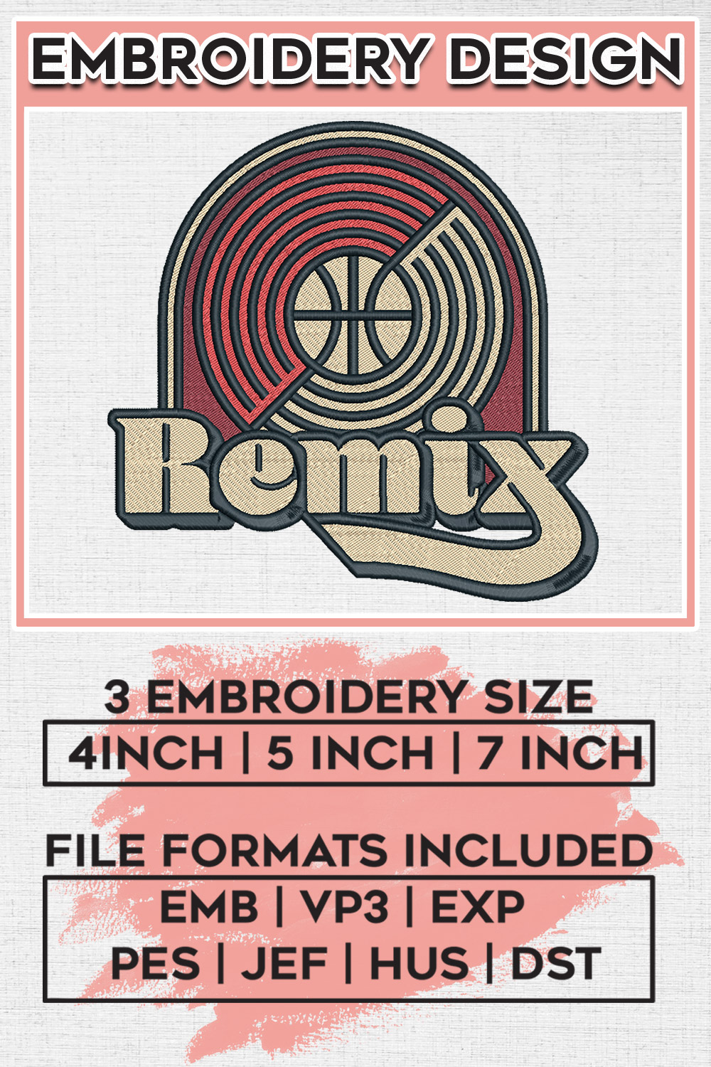 Rip City Remix NBA G League Team Mascot Logo Embroidery Designs, NBA G League Rip City Remix Logo Machine Embroidery Files, NBA G League Basketball Team Logo embroidery designs, NBA G League Rip City Remix, Digital Download