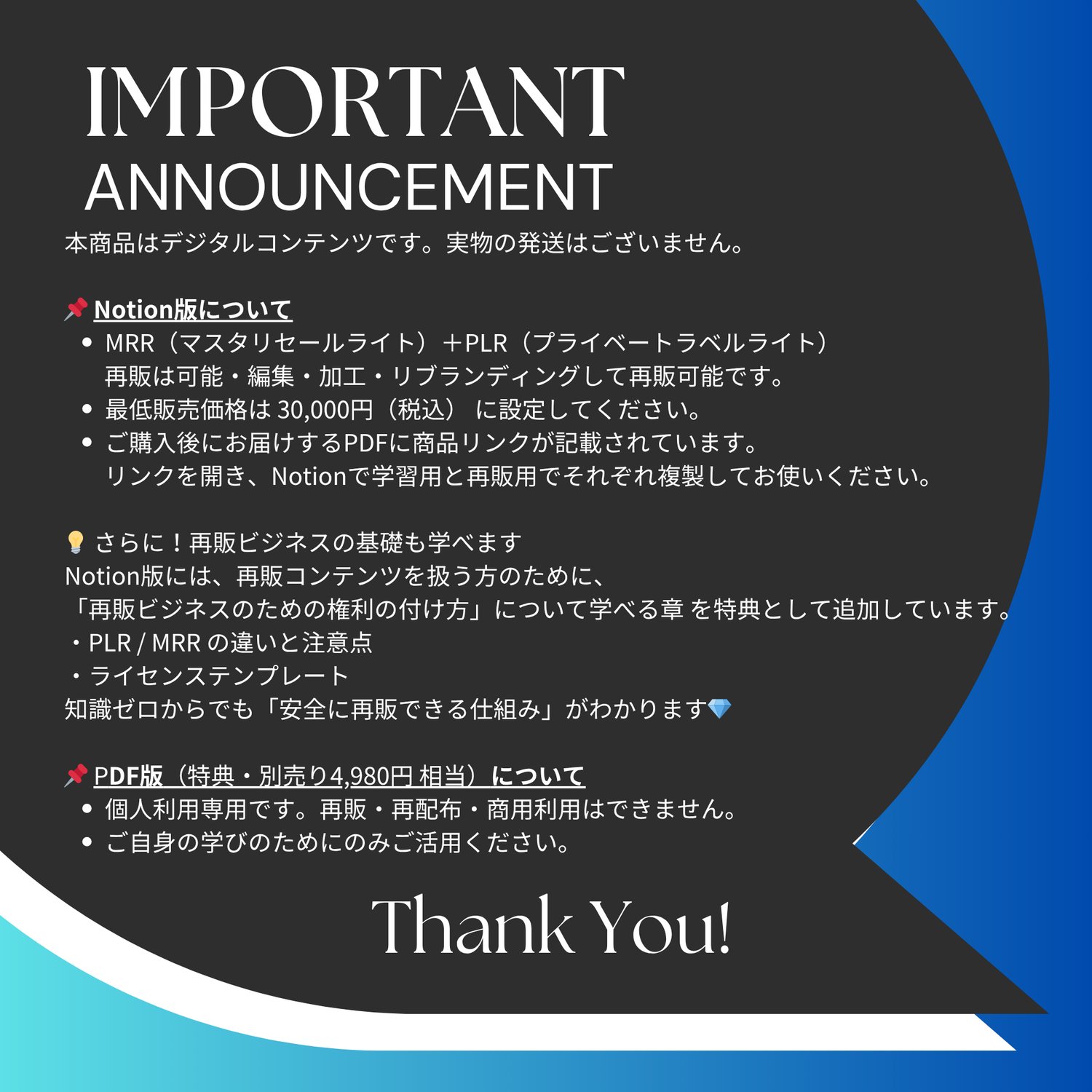 ✅ コンテンツ販売にも使える「再販OK(PLR権付き)」