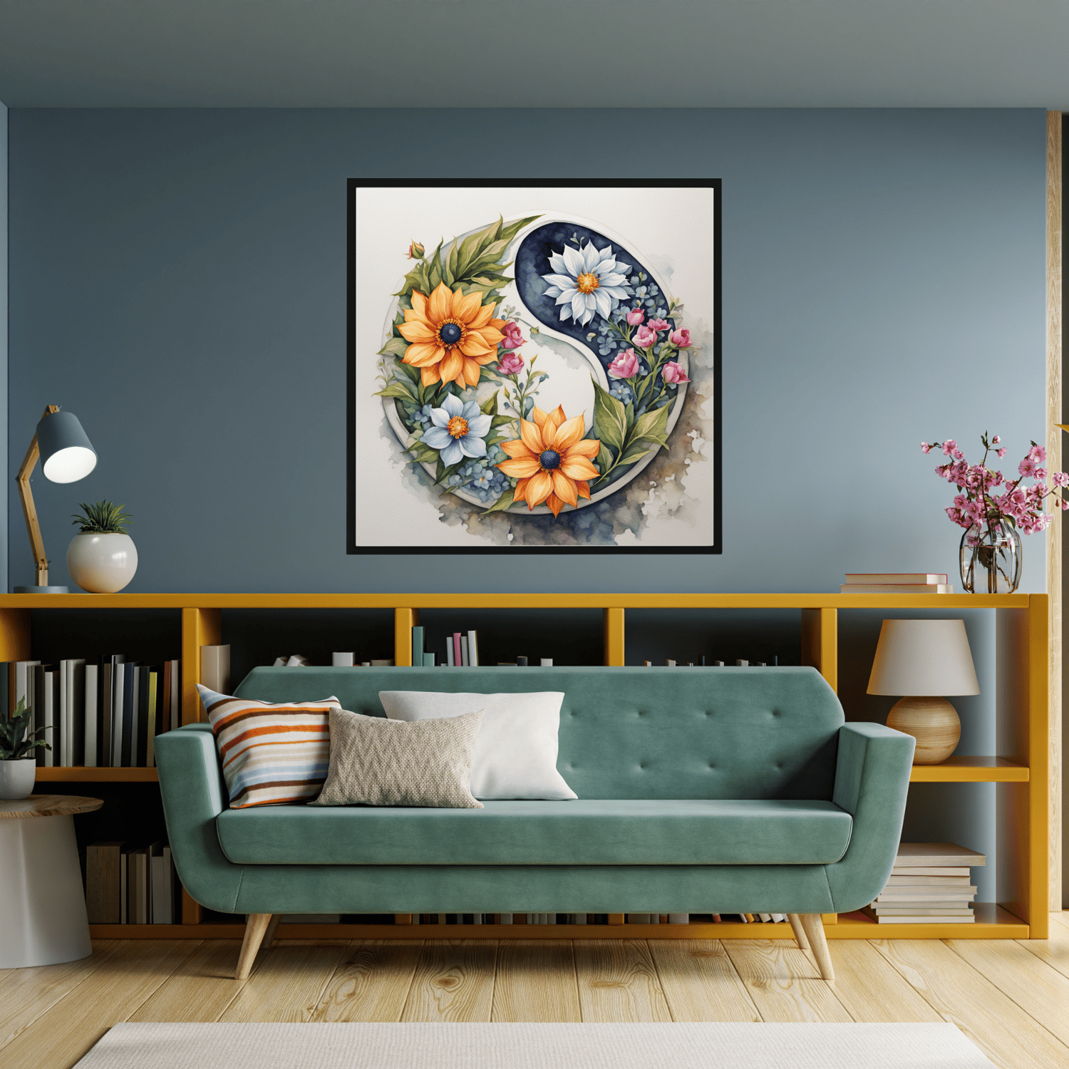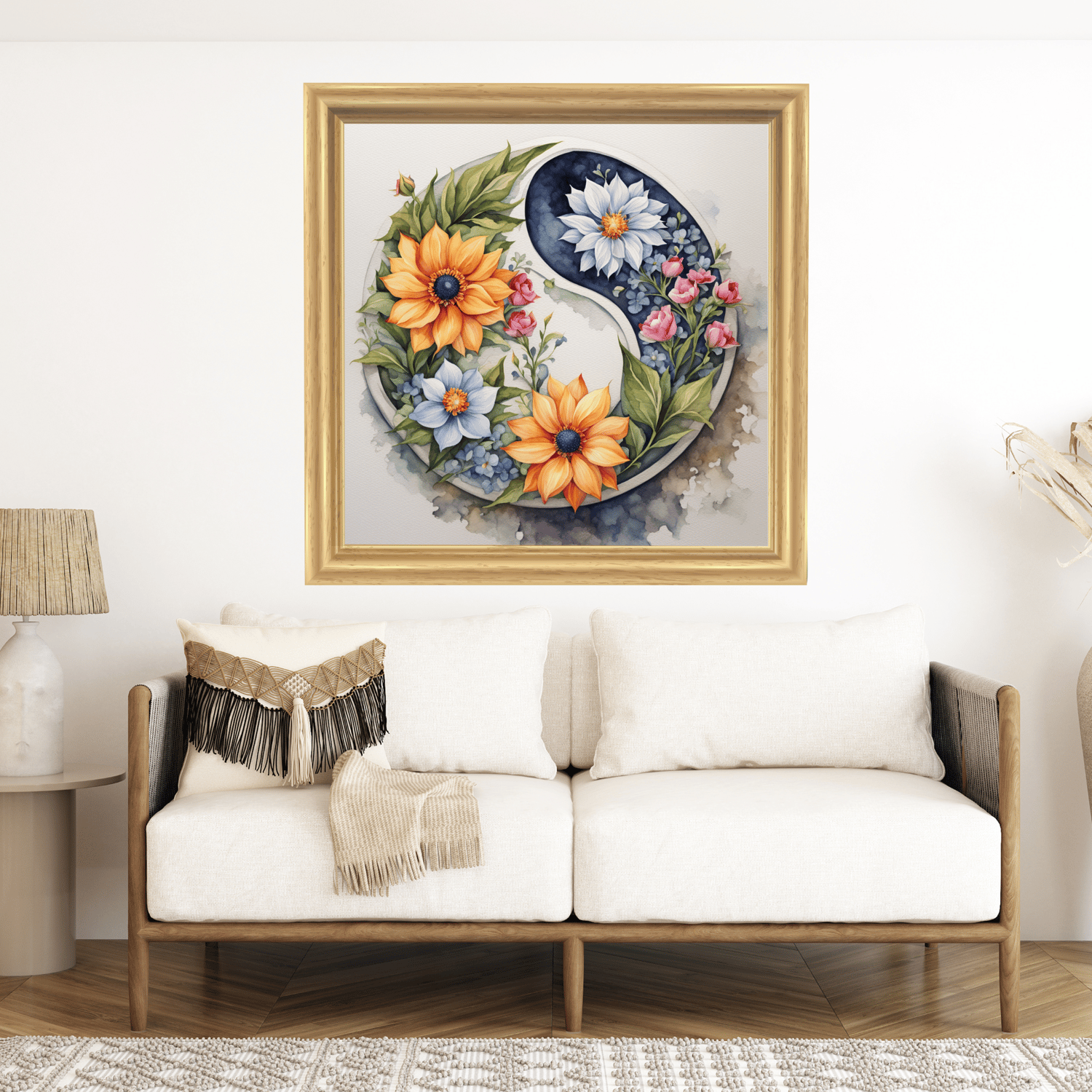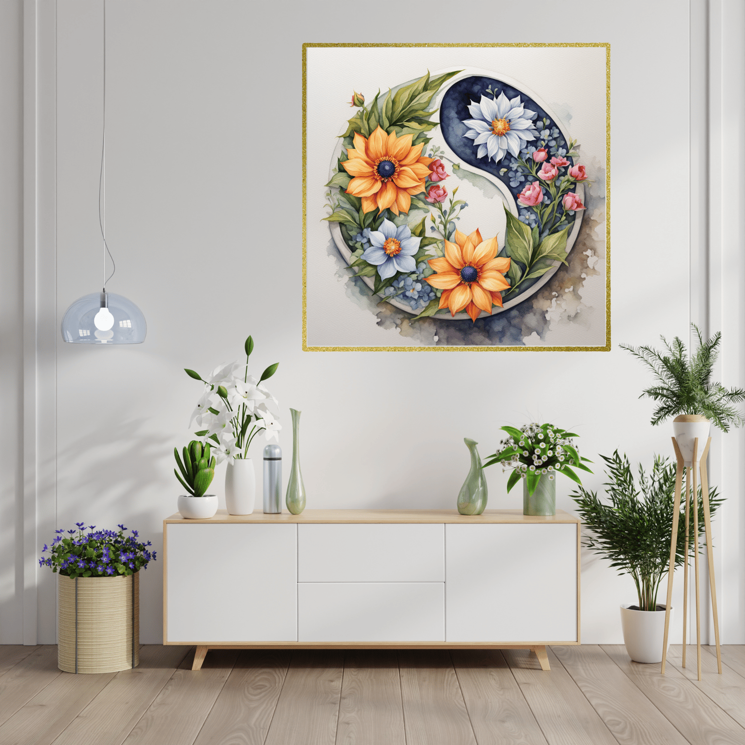 This wall painting is printable, allowing you to easily display it in your home or office. The Spiritual Wall Painting is a beautiful and meaningful addition to any space. With its printable format, you can easily hang it in your living room, bedroom, or meditation space, this spiritual wall painting is sure to inspire calmness and serenity. The design features a floral ying yang symbol, symbolizing balance and harmony, while the watercolor style promotes a sense of tranquility and relaxation. This painting is not only aesthetically pleasing, but also serves as a reminder to cultivate a mindful and balanced lifestyle. Embrace the spiritual awareness and incorporate this artwork into your daily life for a more inspired and uplifted state of being. Perfect for those who practice meditation and mindfulness, this artwork brings a sense of tranquility and balance to your surroundings. Get yours today and transform your home into a sanctuary of peace and relaxation.