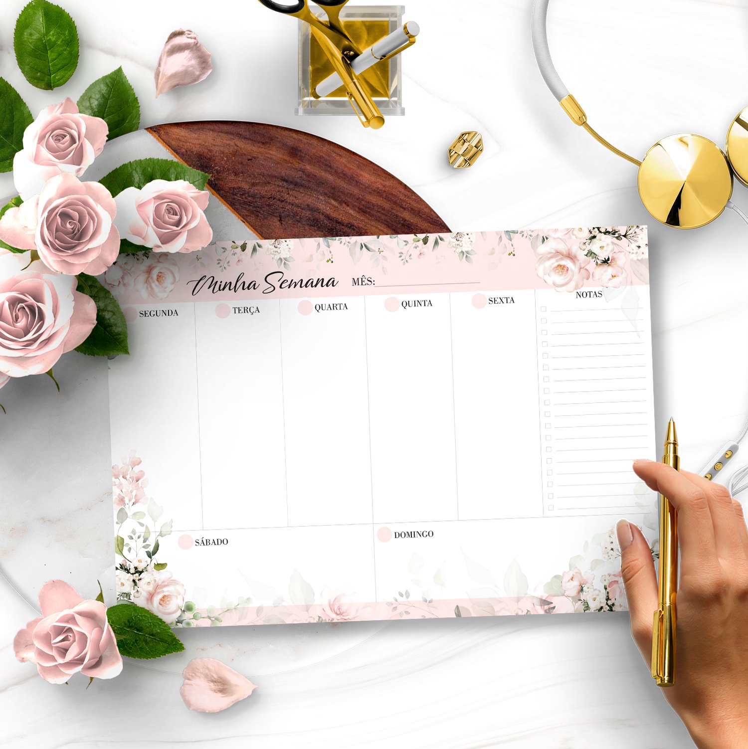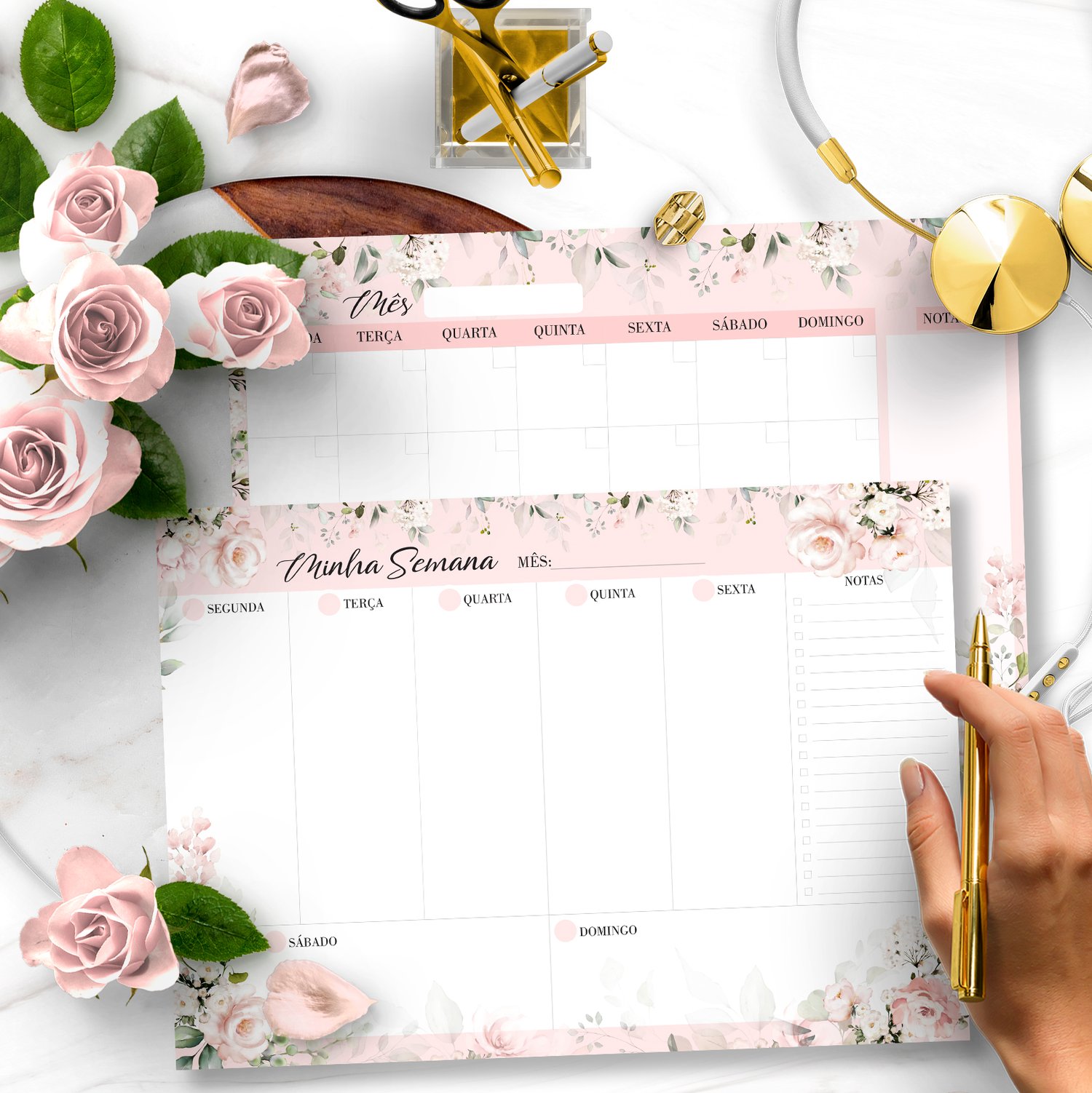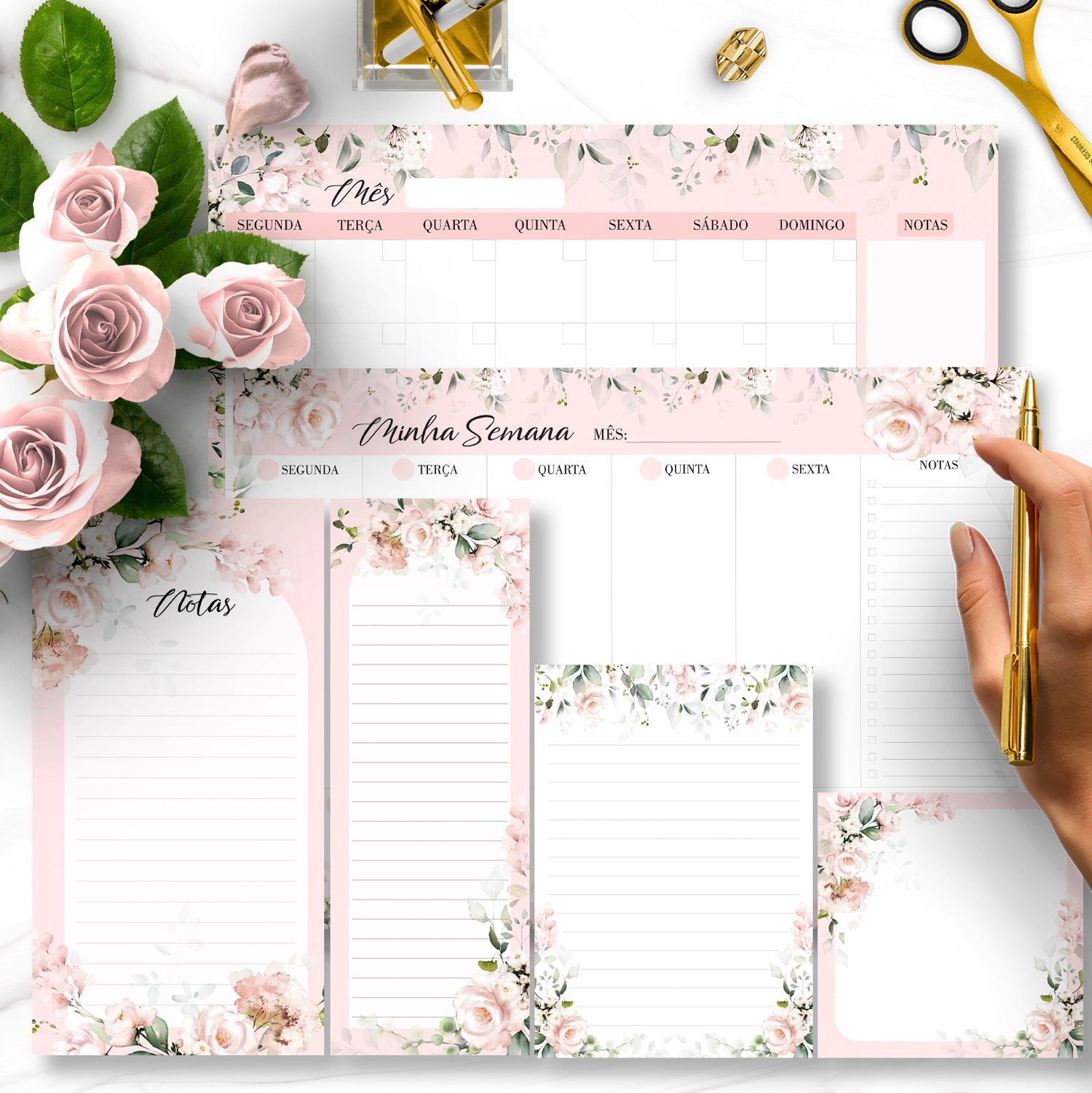 ARQUIVO KIT DESK PLANNERS E BLOQUINHOS COLEÇÃO FLORAL ROSA – BICHO PAPEL
