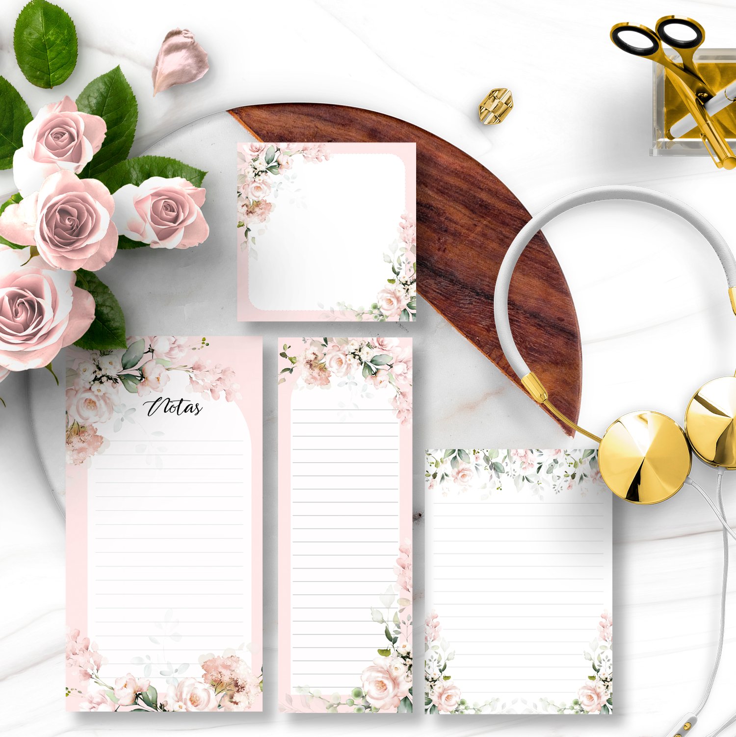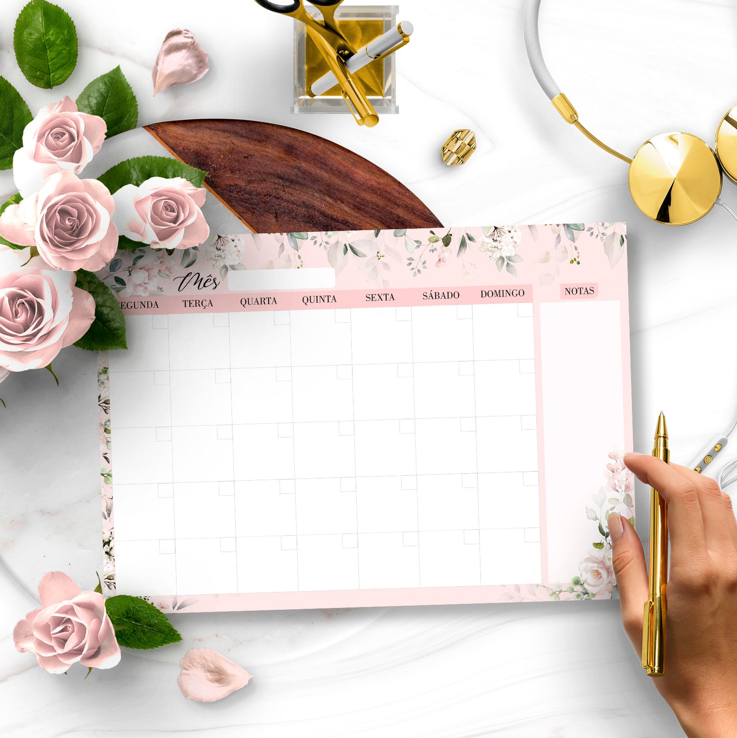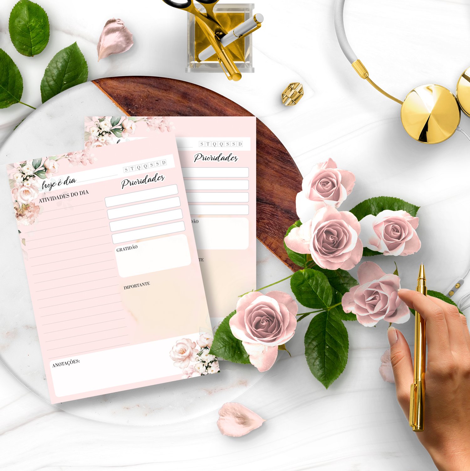 ARQUIVO KIT DESK PLANNERS E BLOQUINHOS COLEÇÃO FLORAL ROSA – BICHO PAPEL