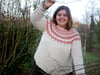 C’est le parfait petit pull d’hiver, confortable, léger et chaud, mêlant jacquard, nopes et point jersey. Basé sur une construction yoke, il met en avant un plastron bicolore sur tout le haut du corps. Le modèle est sans couture et avec des finitions simples en côtes 1/1.