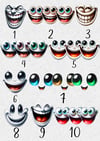 Humour, funny, 3D faces. 20 PNGs; 10 designs, some have 3 eye colour options. Ideal mug, clothing etc. sublimation or print. Instant download