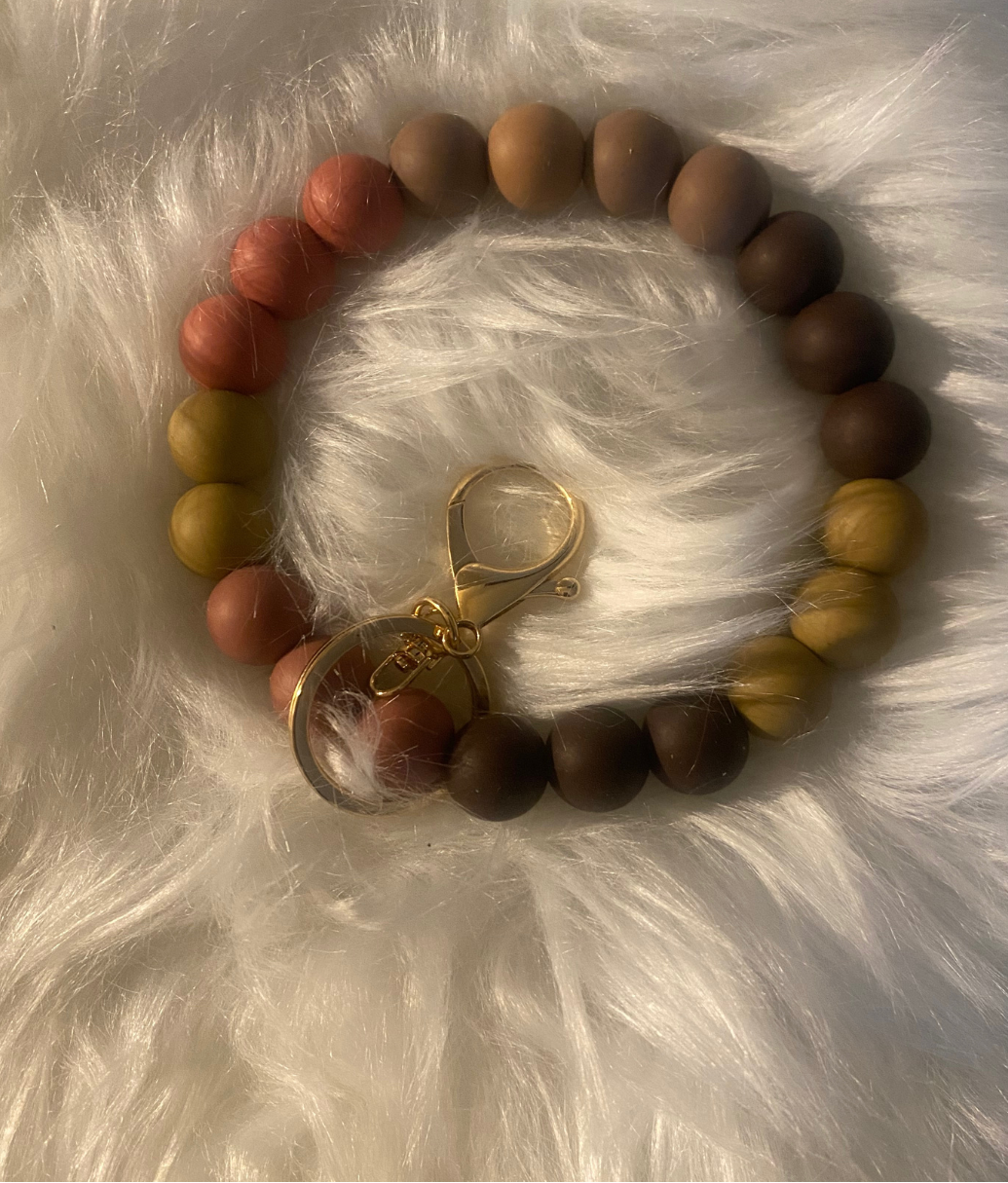 Celebrate the beauty of the season with the Harvest Vibes Wristlet. This rich, earthy color combo features warm tones of mustard, olive green, brown, and deep terracotta like fall leaves you can wear all year round.