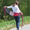 This extra long shawl (nearly 11 feet at the largest size) is wonderfully cozy wrapped around your neck with ample length still at the ends. There’s also plenty of length for the elegant look of gently draped over both arms, without having to hold the shawl in place.