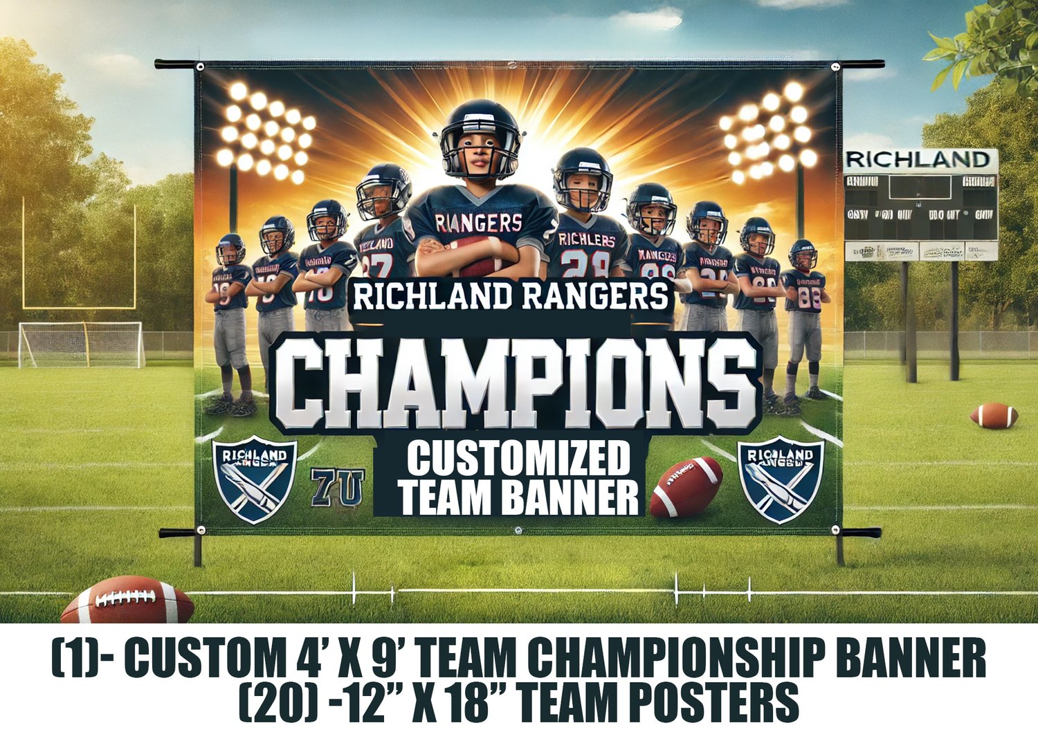 Celebrate your team’s success in style with our 4' x 9' Vinyl Banner and Team Poster Package for just $350!