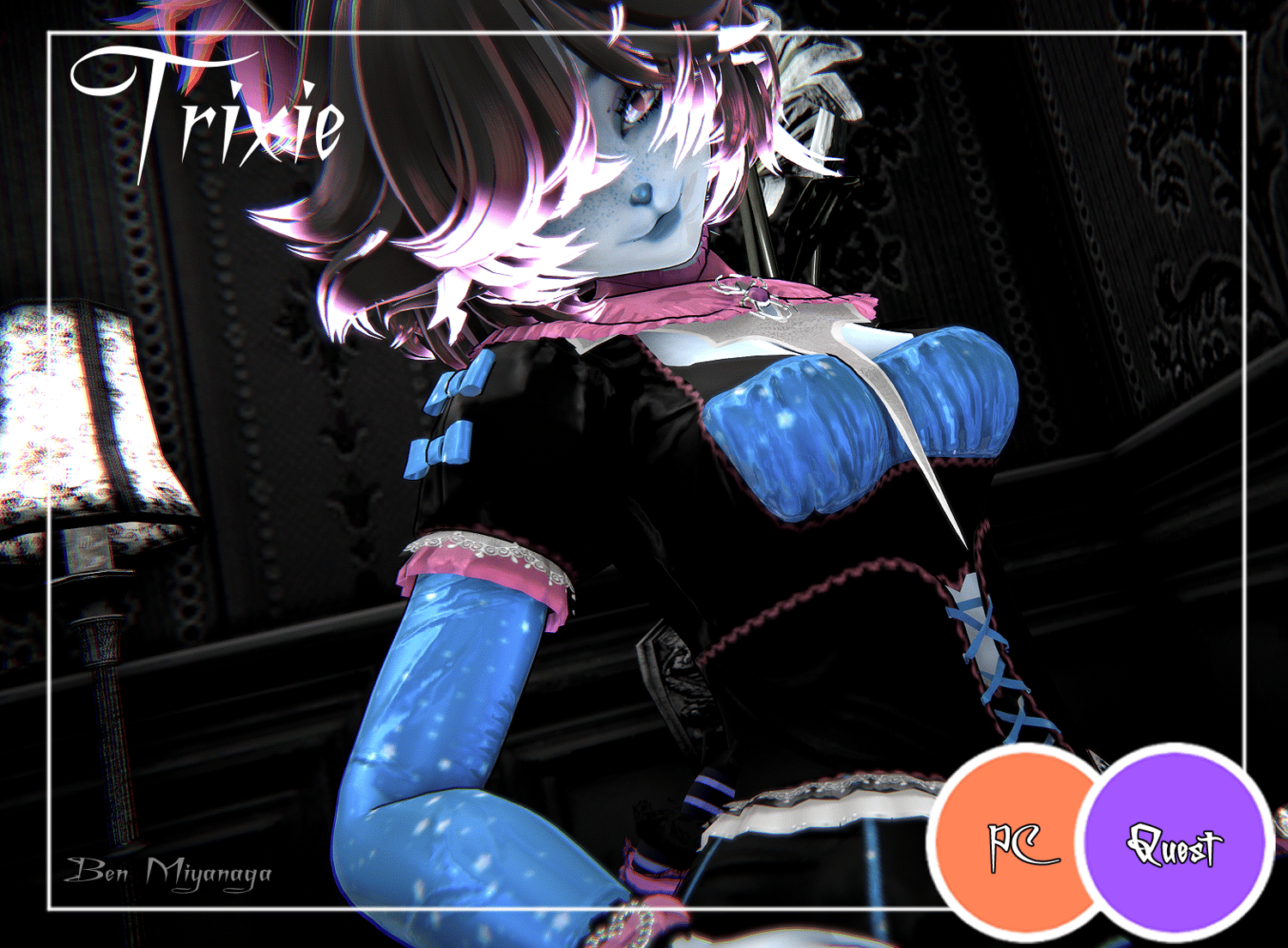 Trixie's bone count on her Quest version have been hand optimized by myself to meet VRChat's Quest requirements. Which means physbone movements on Quest will look very different compared to the physbone movements on PC.
