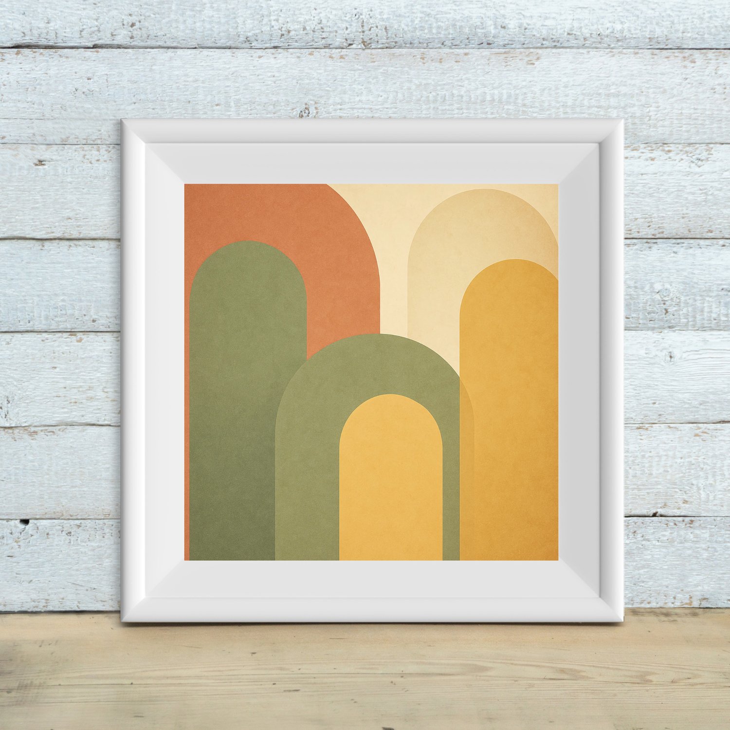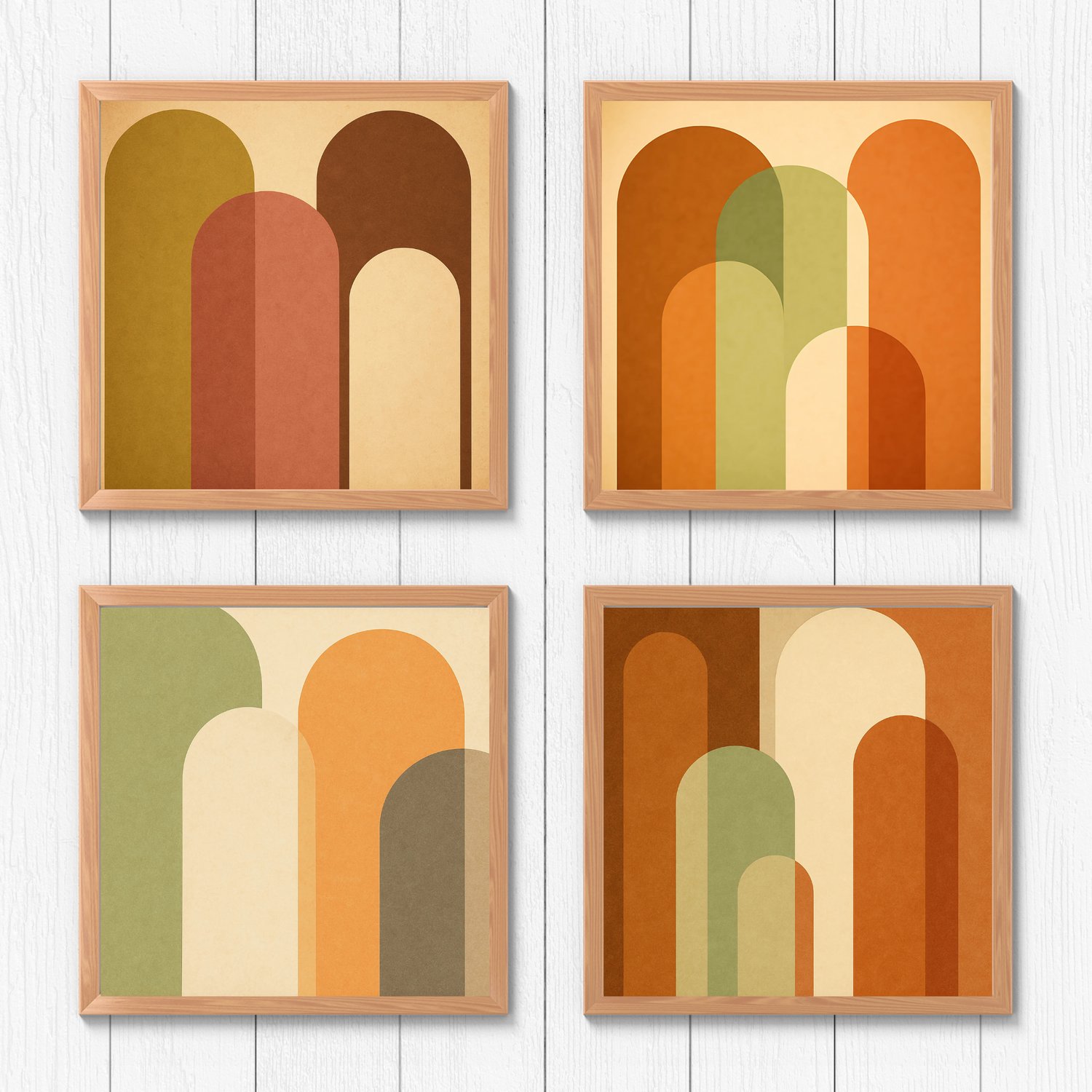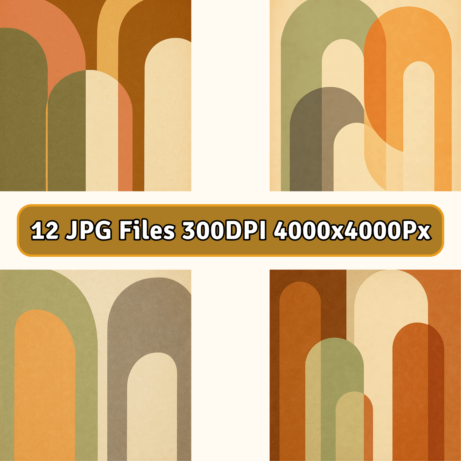 Elevate your creative projects with this stylish pack of retro abstract background designs. Inspired by mid-century modern aesthetics, this collection features bold arch shapes, vintage color palettes, and warm textured finishes. These high-resolution JPG files are ideal for creators looking to add a trendy retro vibe to their visual content.