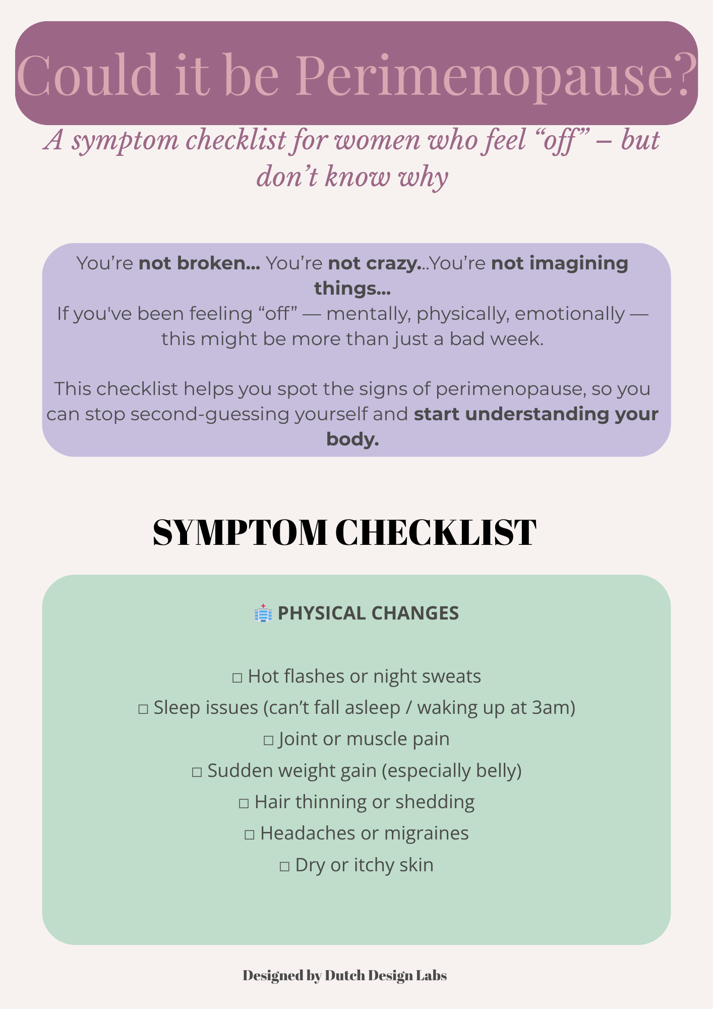 ✔️ A simple symptom checklist (physical, emotional, hormonal)