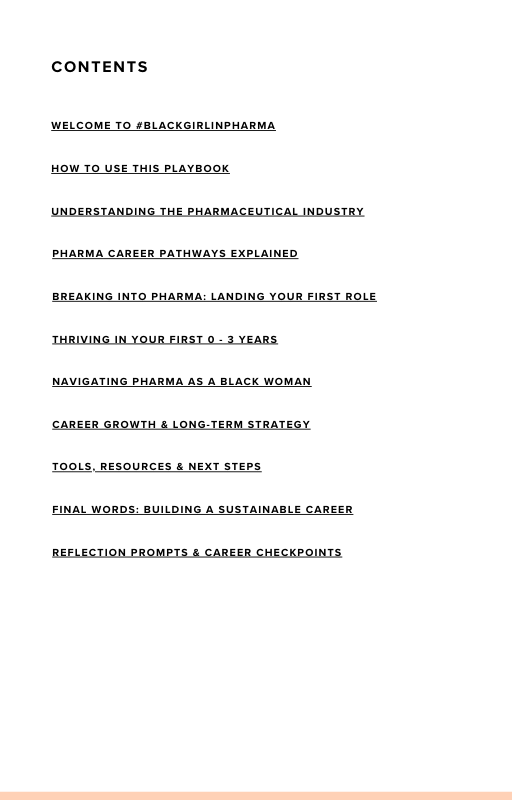 Written by a Black woman building her own career in pharma, this playbook is designed for students, recent graduates, and early-career professionals who want a clear, honest introduction to the pharmaceutical industry and practical guidance on how to get in and grow.
