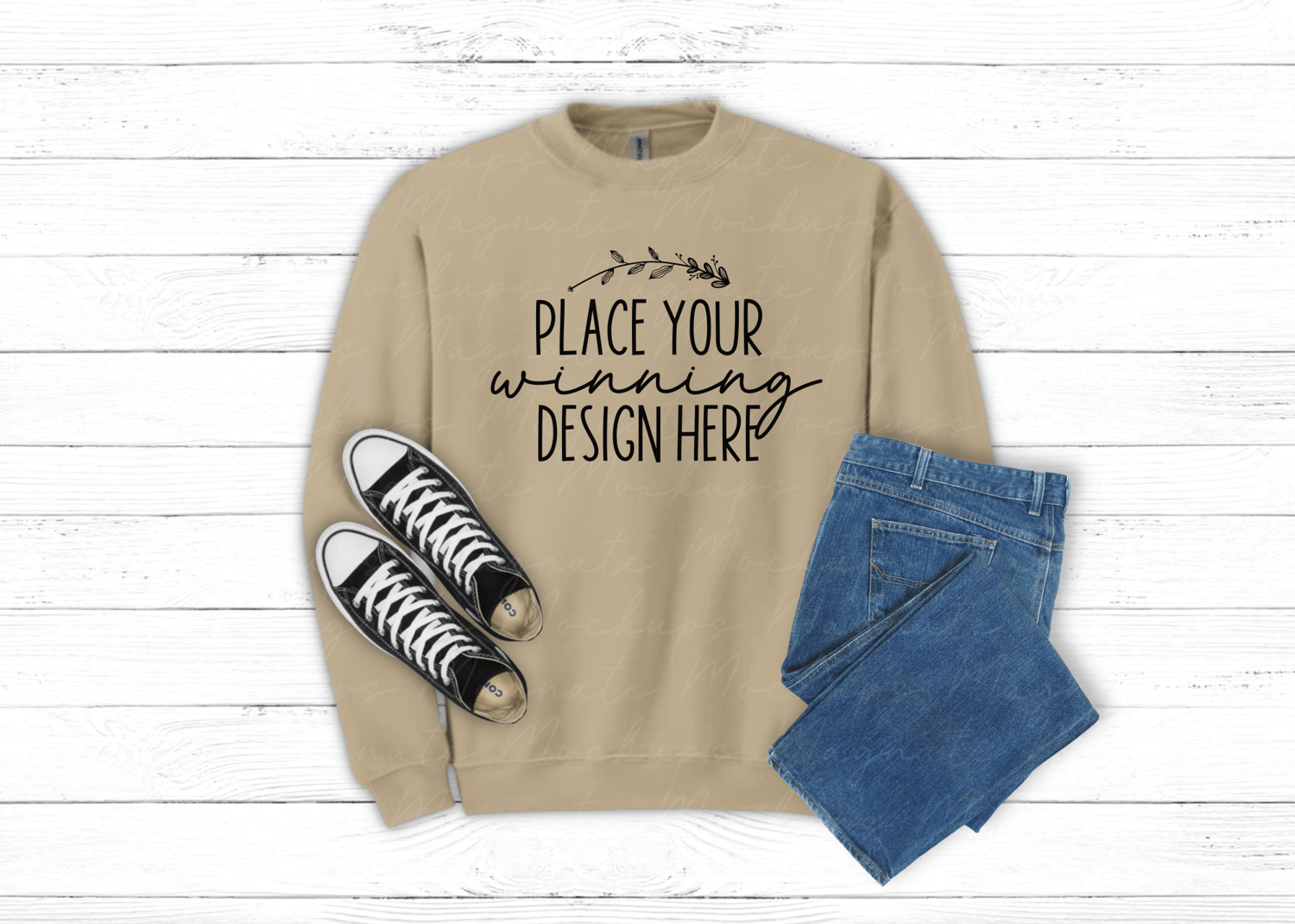 Sand Sweater Mockup Gildan 18000 Mock up Gildan unisex sand sweatshirt mockups mens sweater mock ups flat lay sweaters JPG Digital Download