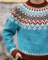 Stor Stormur is the big brother (or sister) of the Stormur pullover and is inspired by traditional Icelandic motifs. Can you see a fleet of viking ships sailing in a storm? The sweater is worked from the top-down and short rows lift the back neck taller than the front.