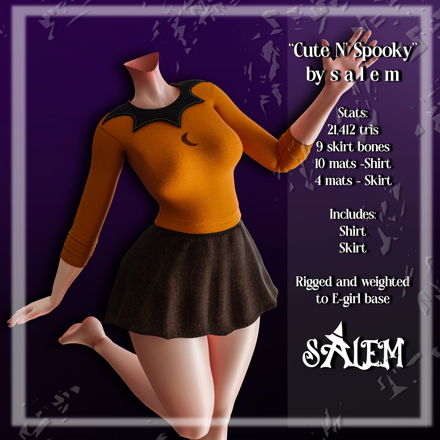 It is rigged and weighted to the Egirl base, including phys bones on the skirt for flowy physics.