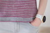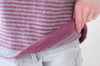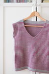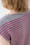 Beautiful striped top with V-neck and folded hem, worked seamlessly from top down. The shoulders are shaped with short rows.