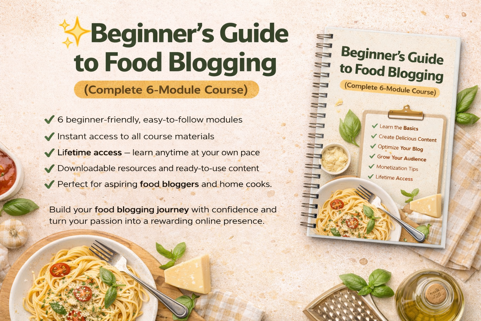 Start your food blogging journey with confidence—learn to set up your blog, create engaging recipes, master content planning, and grow your blog audience step by step.
