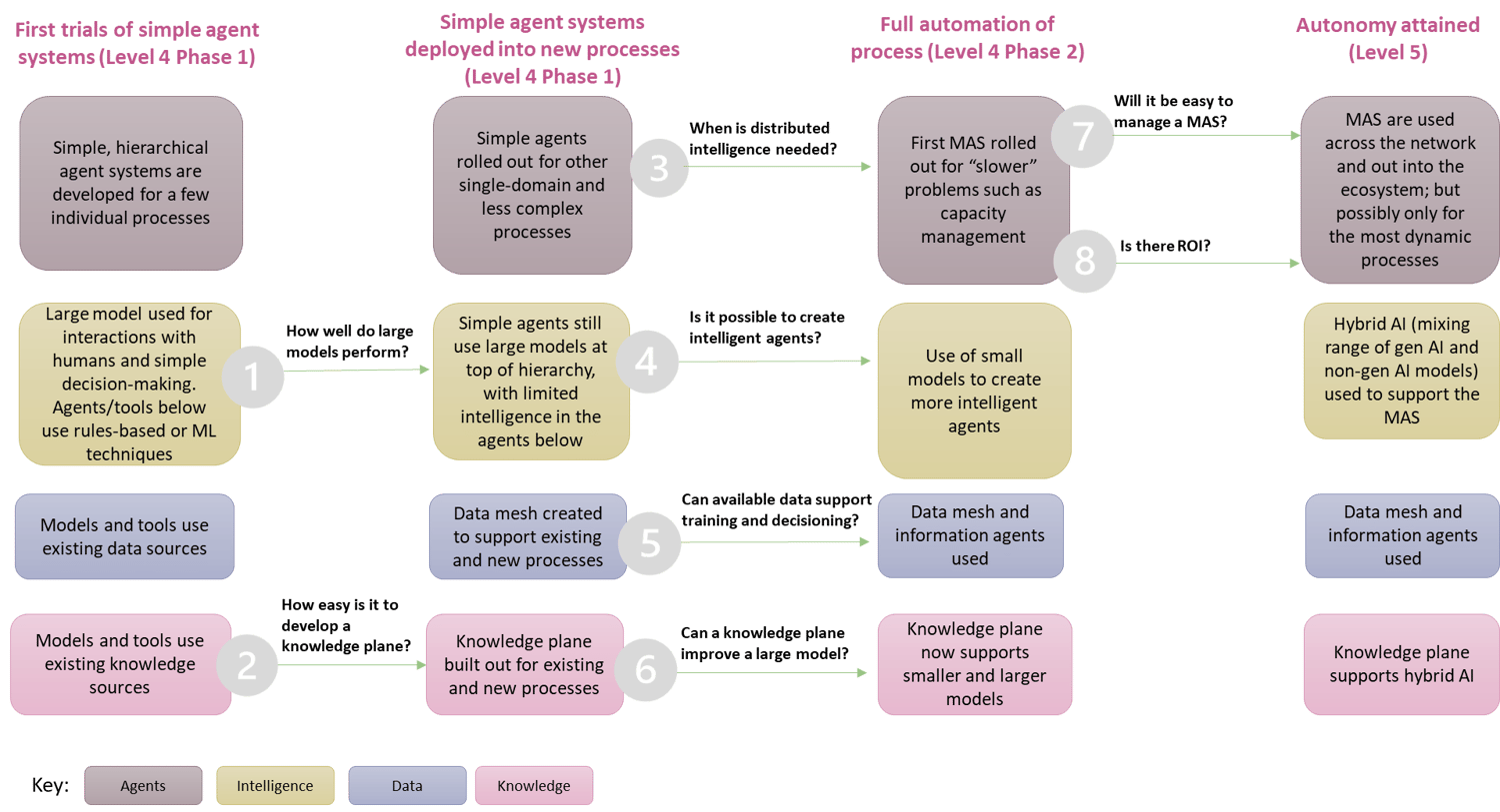 - the push to build an "intelligence architecture" (including, AI/ML, agents, knowledge planes and data mesh) to support the network at Lv 4 and 5 of the TM Forum's Autonomous Network model