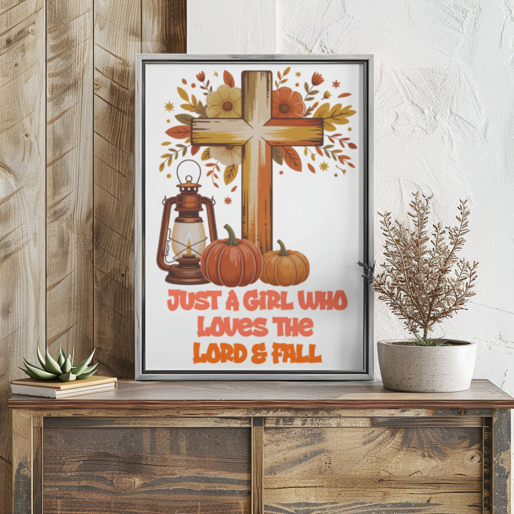 Just a Girl Who Loves the Lord & Fall PNG | Christian Sublimation Design | Rustic Cross Fall Wall Art | Thanksgiving Digital Download