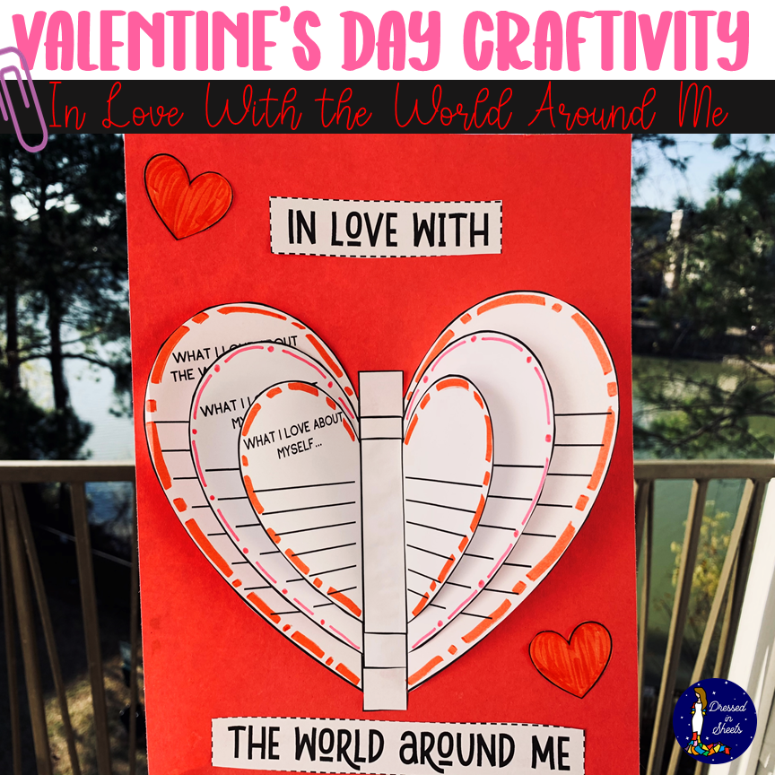 In the small heart kiddos will write what they love about themselves, in the medium one they will write what they love about their family, and on the big heart they will write about what they love about the world we live in. Assembly instructions included. You will need construction paper, colors, markers, scissors, and glue.