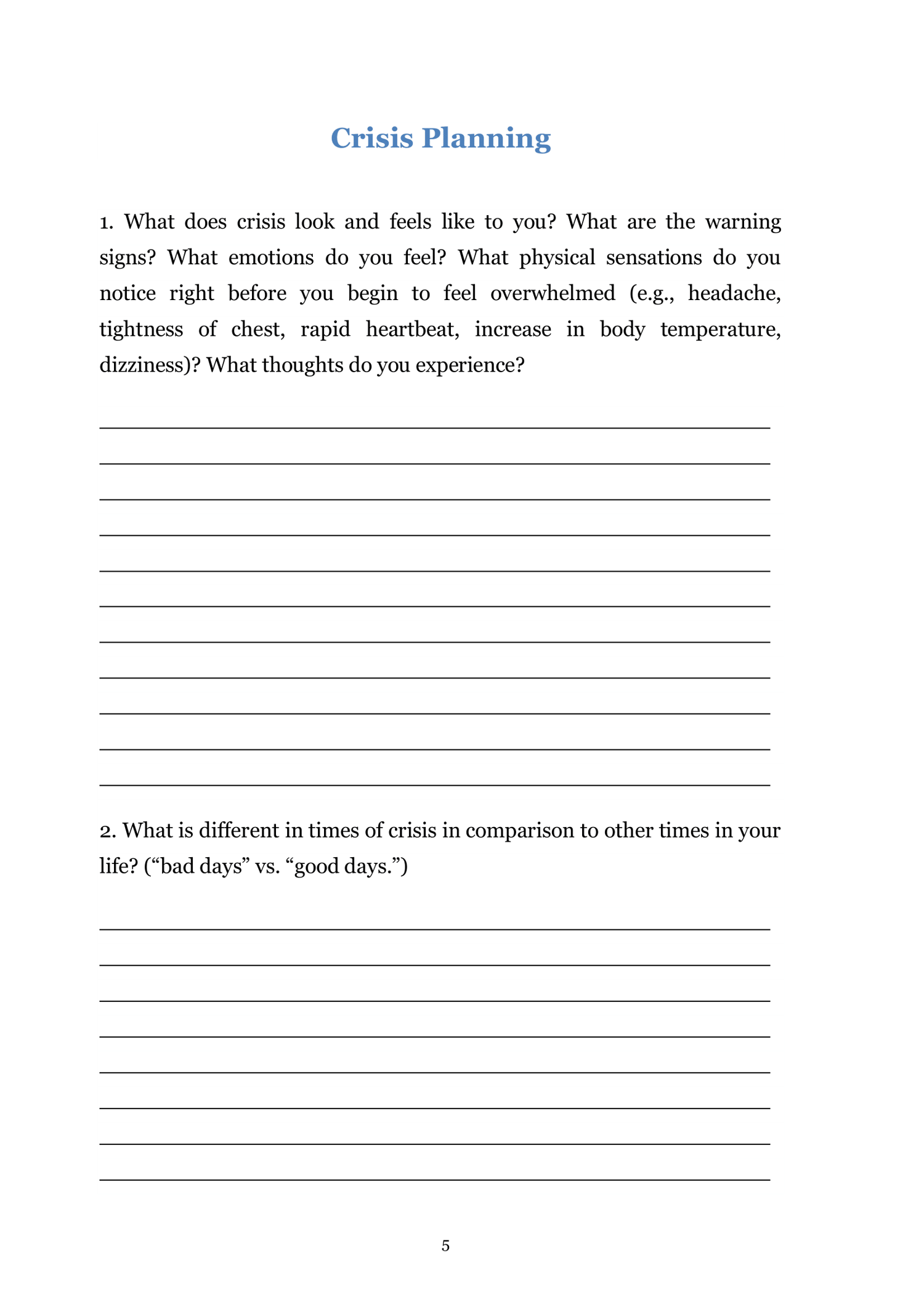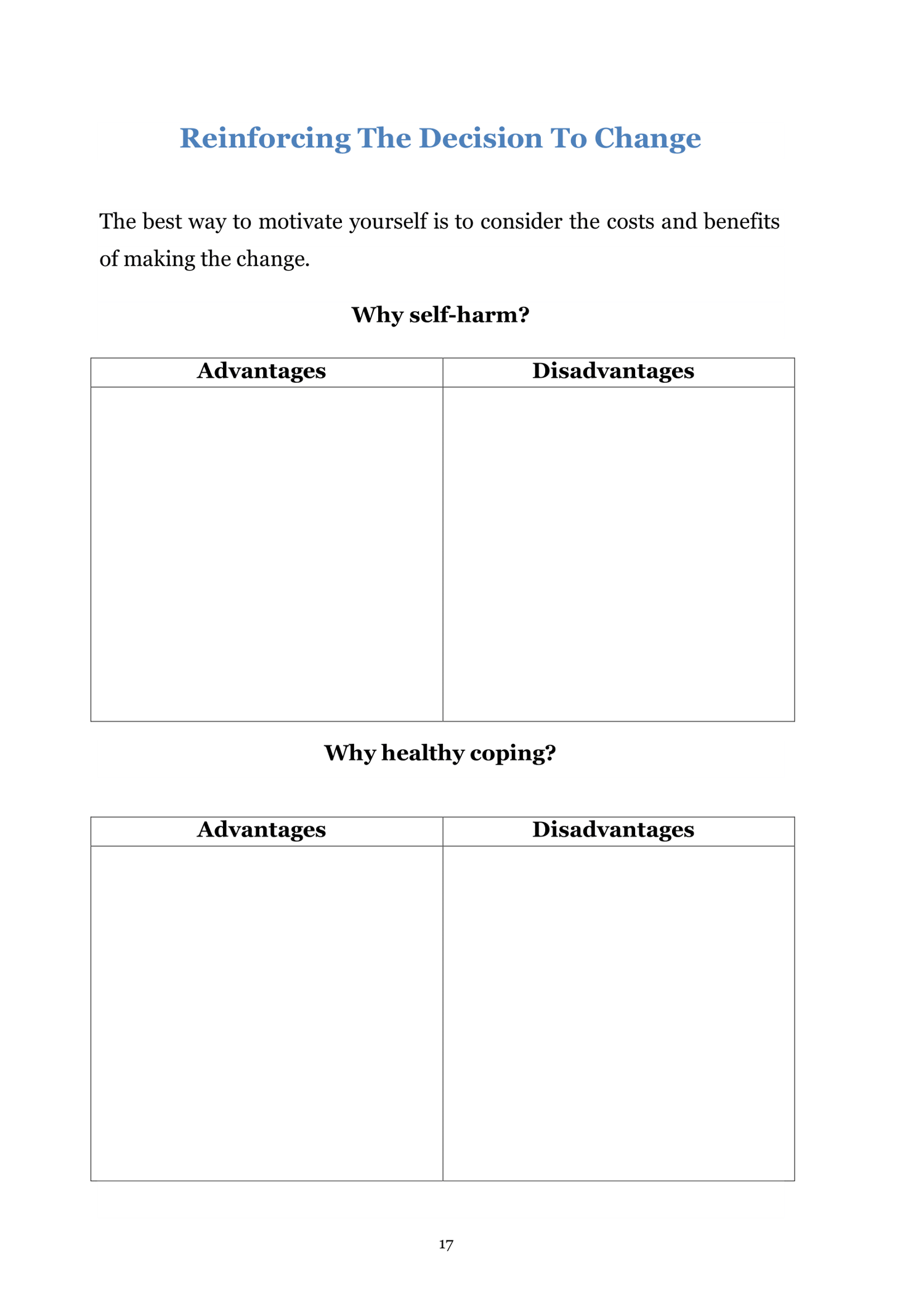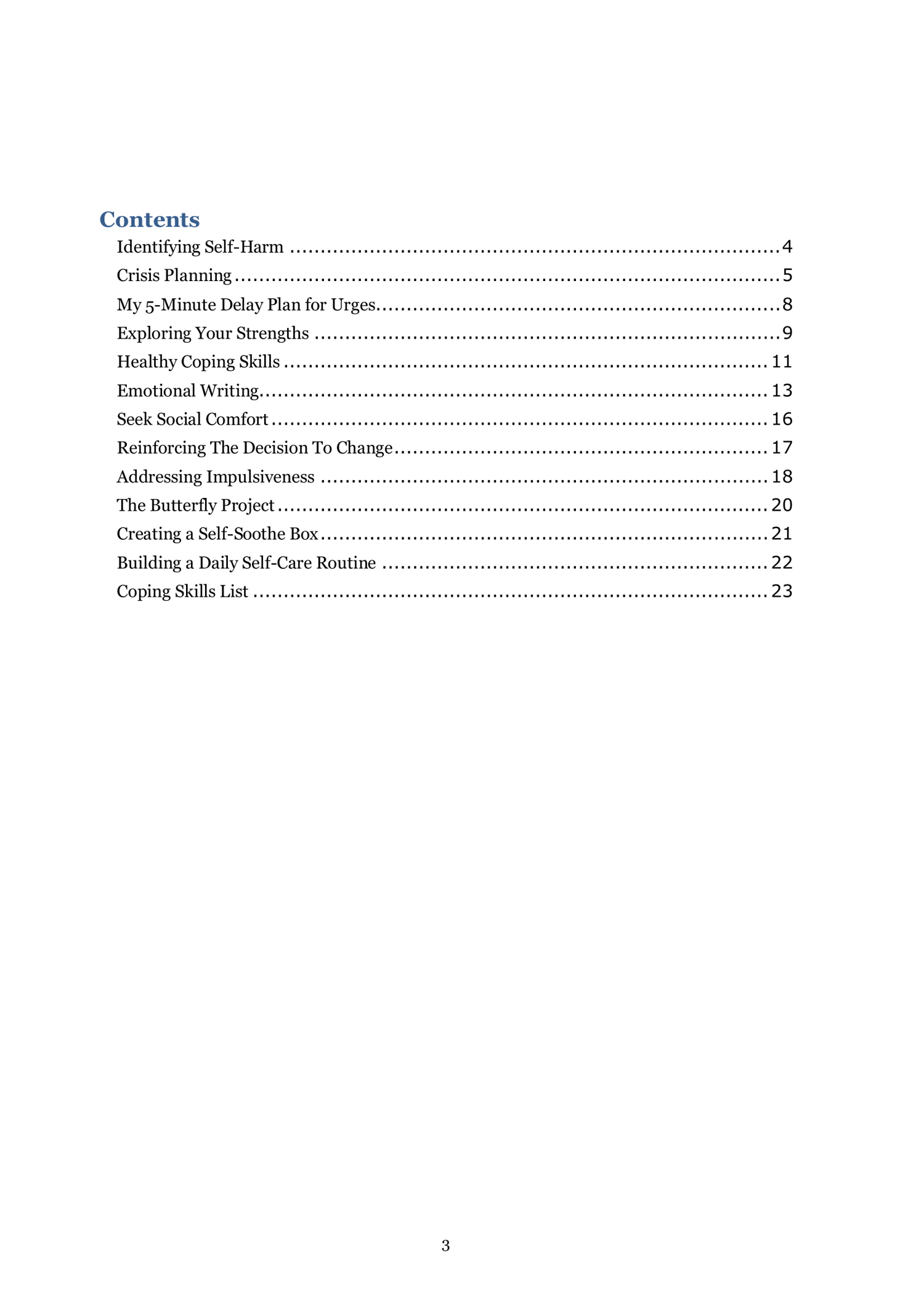 - Identify triggers, thoughts, and situations that lead to self-harm urges