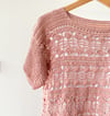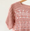 This lace shell is a great cover up for the beach or can be worn over a tank top or camisole as a dressy summer top for those humid days. Worked in two rectangles with no shaping, all you have to master is the pattern repeat and the top works up so quickly! There are sleeveless or sleeve options. NEW Video tutroail link to all pattern rows included.
