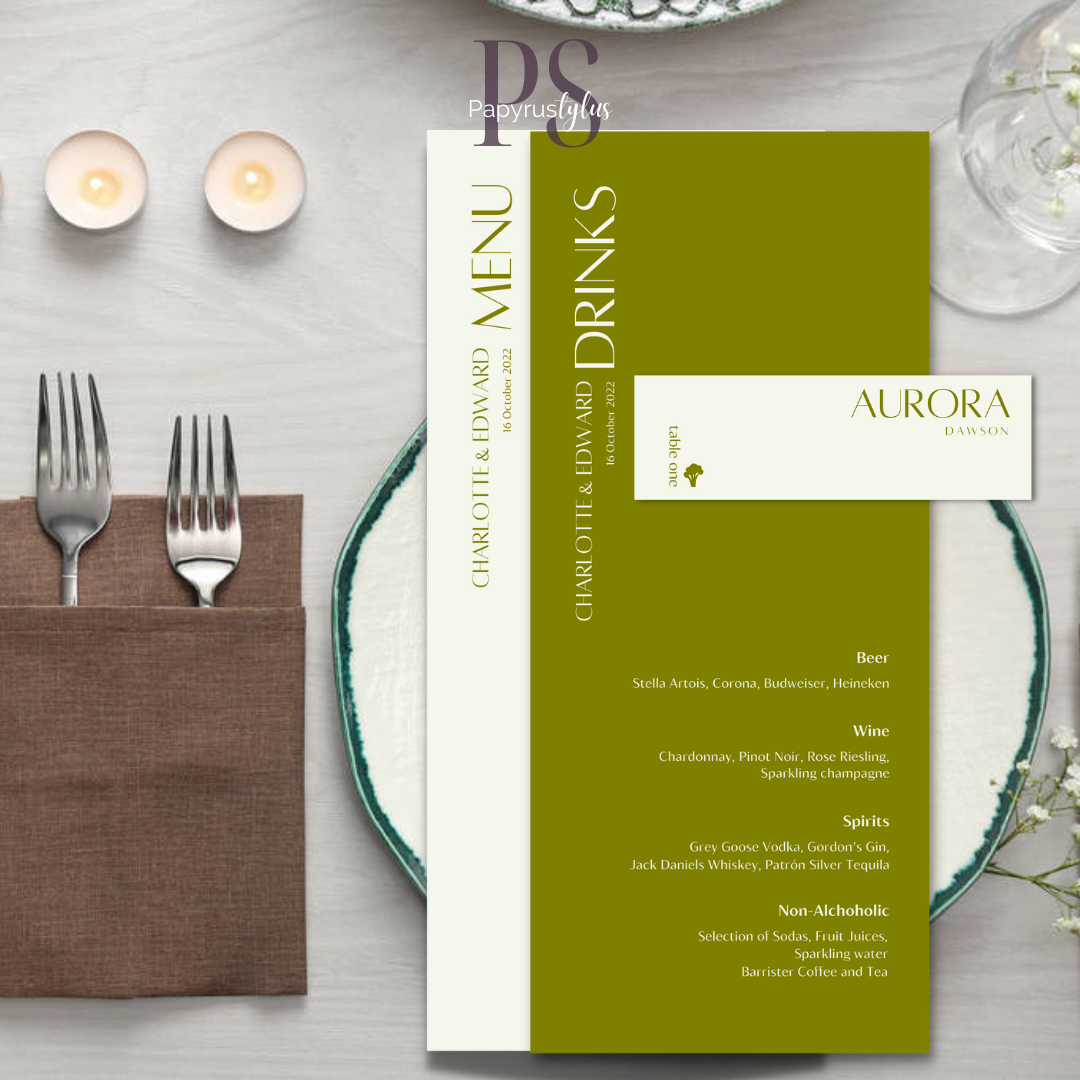 EDWARD Modern Place Card Template | OLIVE 2-colour