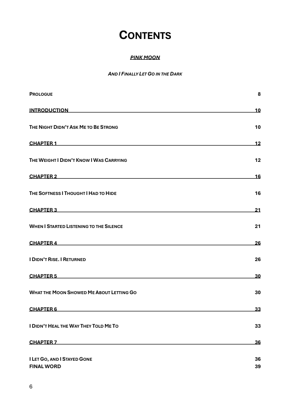 Pink Moon – And I Finally Let Go in the Dark is not a self-help manual. It’s a breathing space — a book crafted for tablets, built with rhythm, pauses, and quiet imagery that lets you read slowly, not scroll quickly.