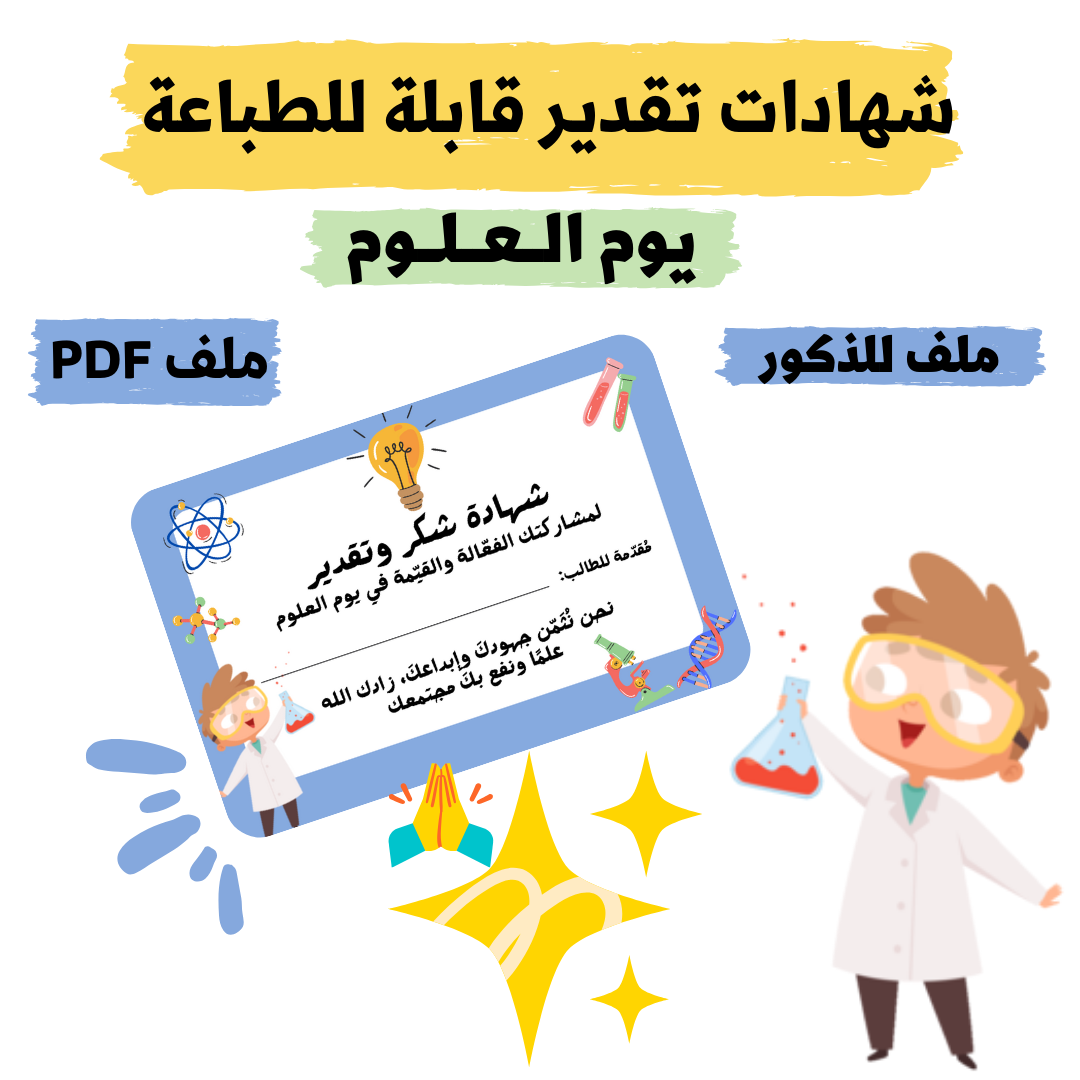 شهادات تقدير للذكور والإناث للمشاركة في يوم العلوم PDF