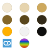 Set of 10 differnt colours (see the swatches picture), 6 skin tones, cartoon yellow, greyscale, black and white & rainbow gradient.