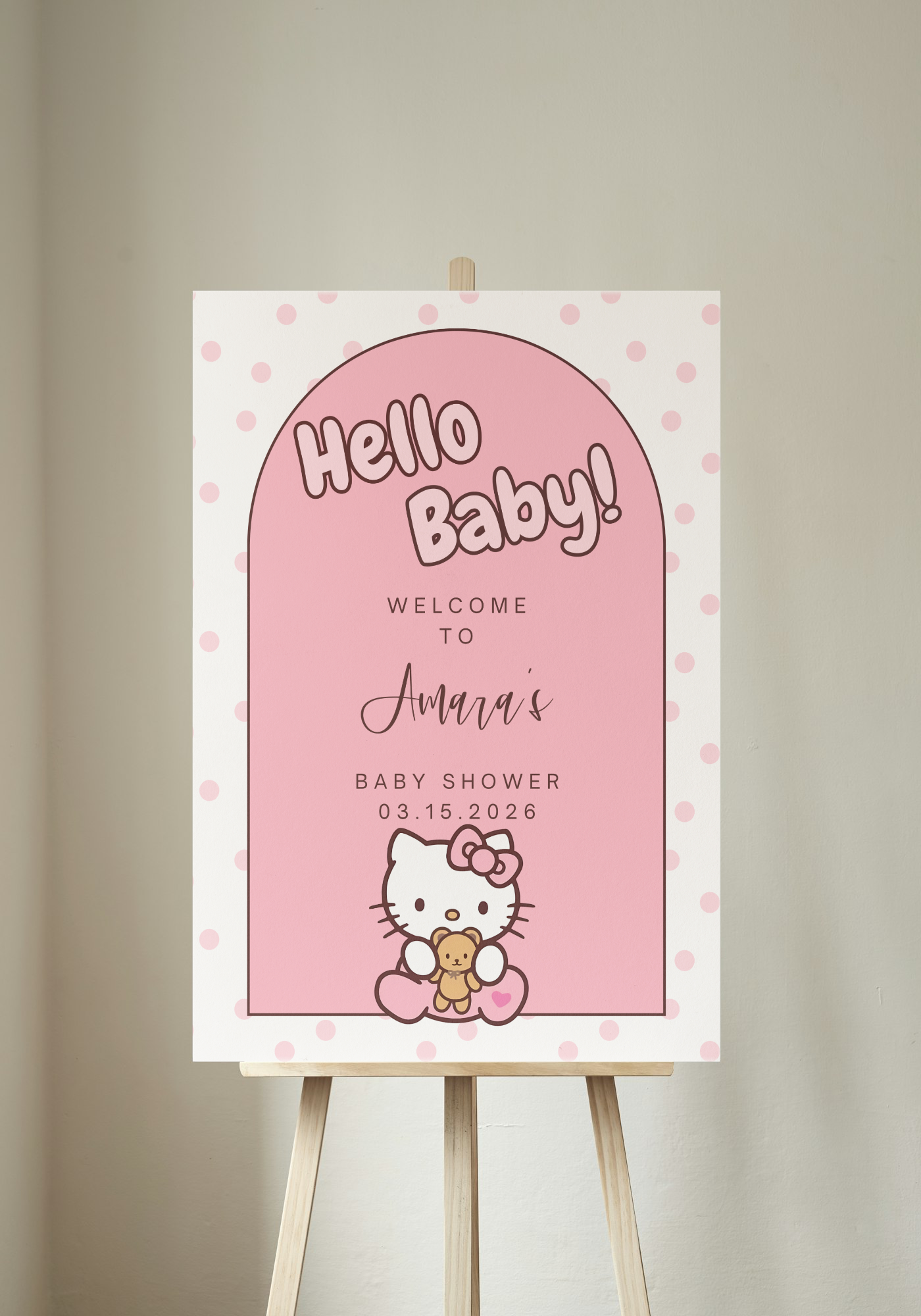 Hello Kitty Baby Shower Welcome Sign Polka Dots