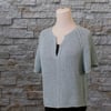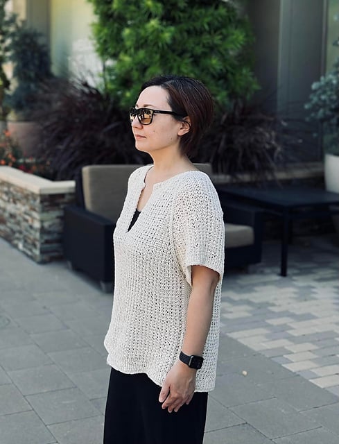 Kagi sweater is a key neck sweater with broken ribbing. This design is worked from the top down and worked in the round for the bottom body. We work flat for the upper body to make a key neckline.