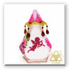 This gorgeous beaded anniversary jar makes a lovely keepsake for a milestone wedding anniversary for you or a loved one. The second of a series, this 40th Ruby anniversary shows flowers, Cupids, love heart with wedding rings. Ruby coloured pearls adorn the top and a matching removable stopper completes the jar.