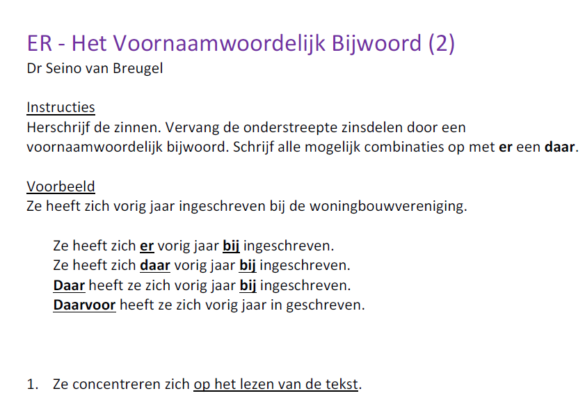 Dutch B2-2 - Oefeningen ER + Prepositie