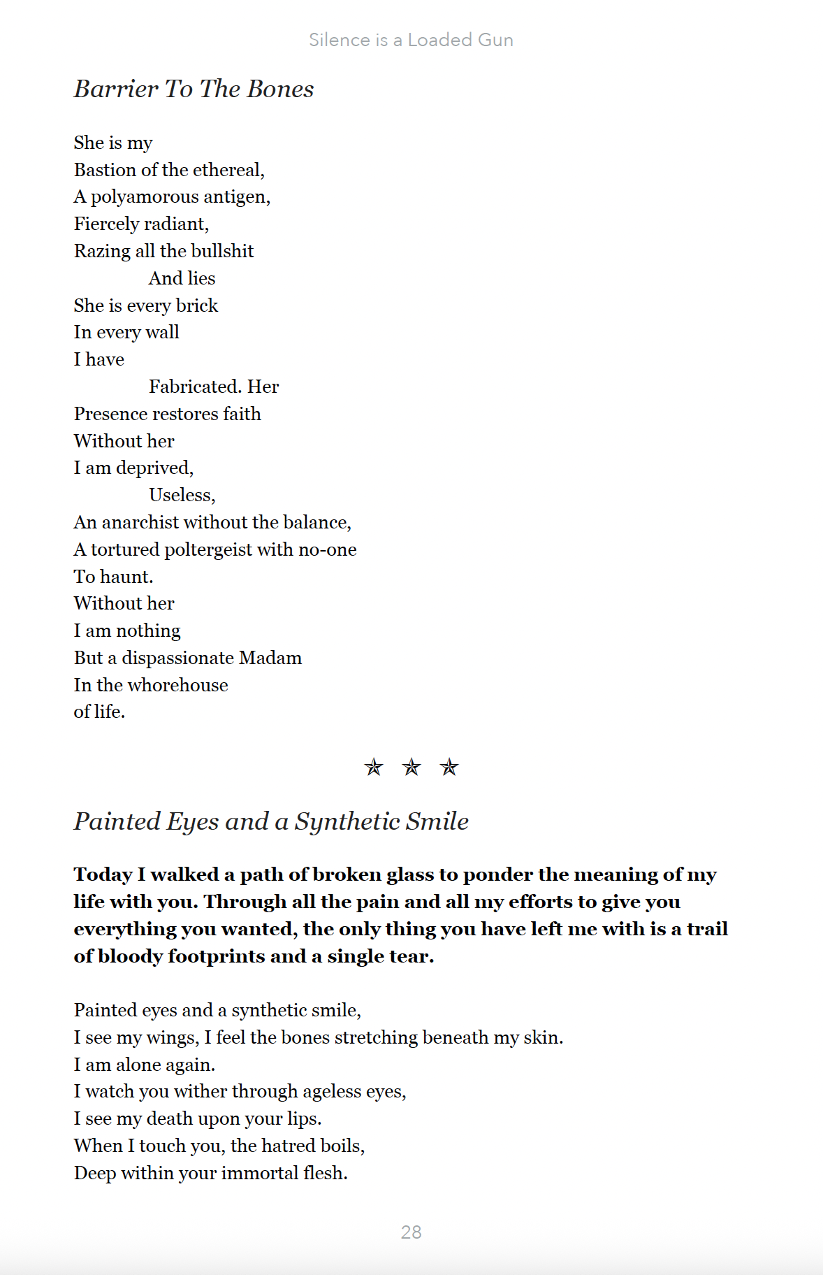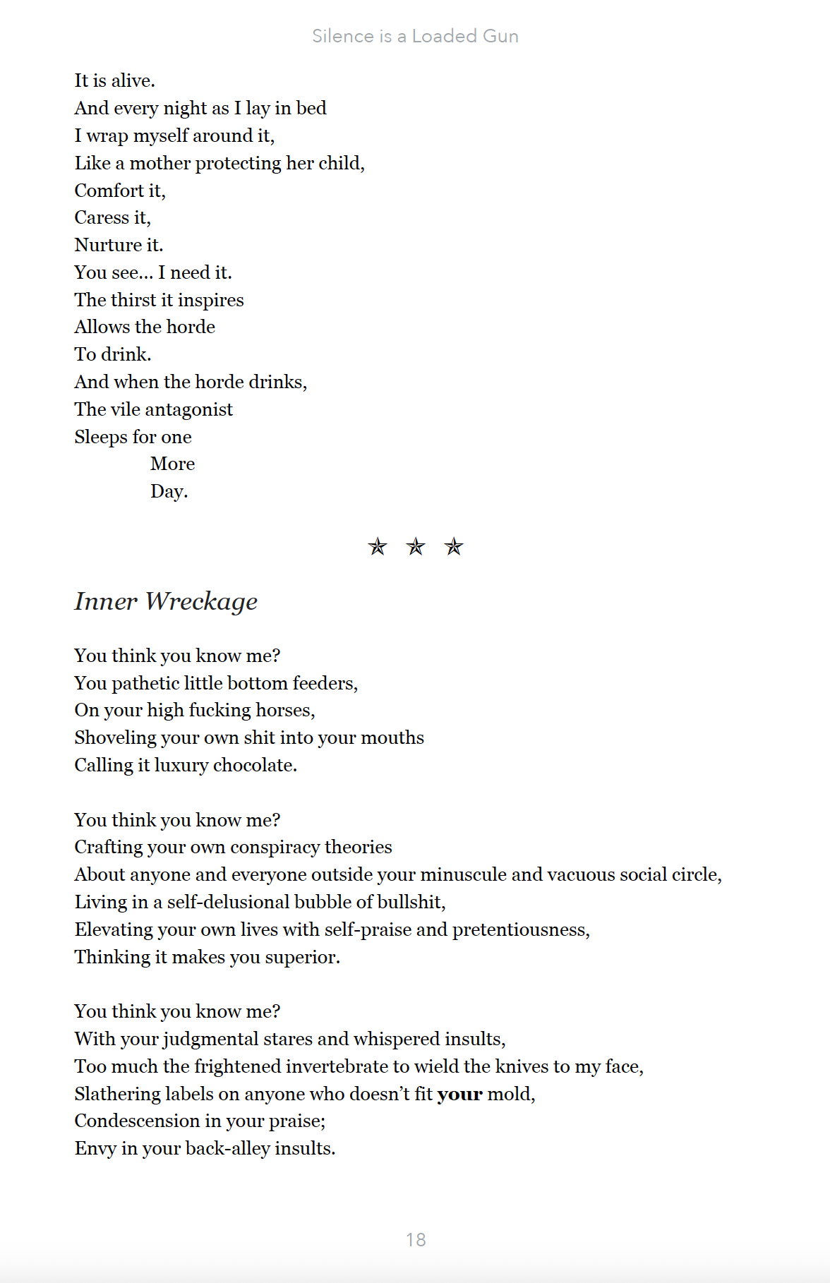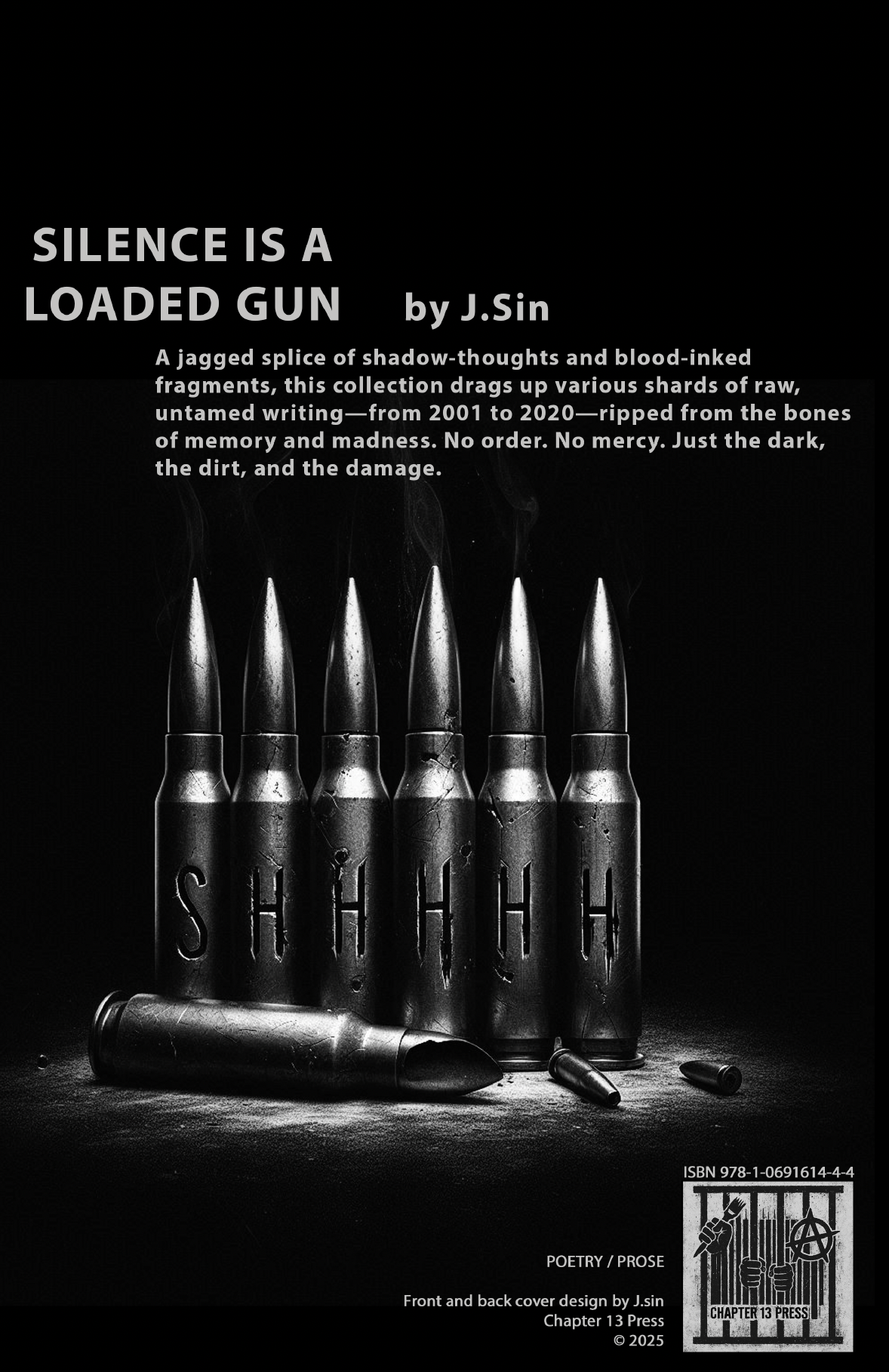 Silence is a Loaded Gun, By J.Sin - A jagged splice of shadow-thoughts and blood-inked fragments, this collection drags up various shards of raw, untamed writing—from 2001 to 2020—ripped from the bones of memory and madness. No order. No mercy. Just the dark, the dirt, and the damage.