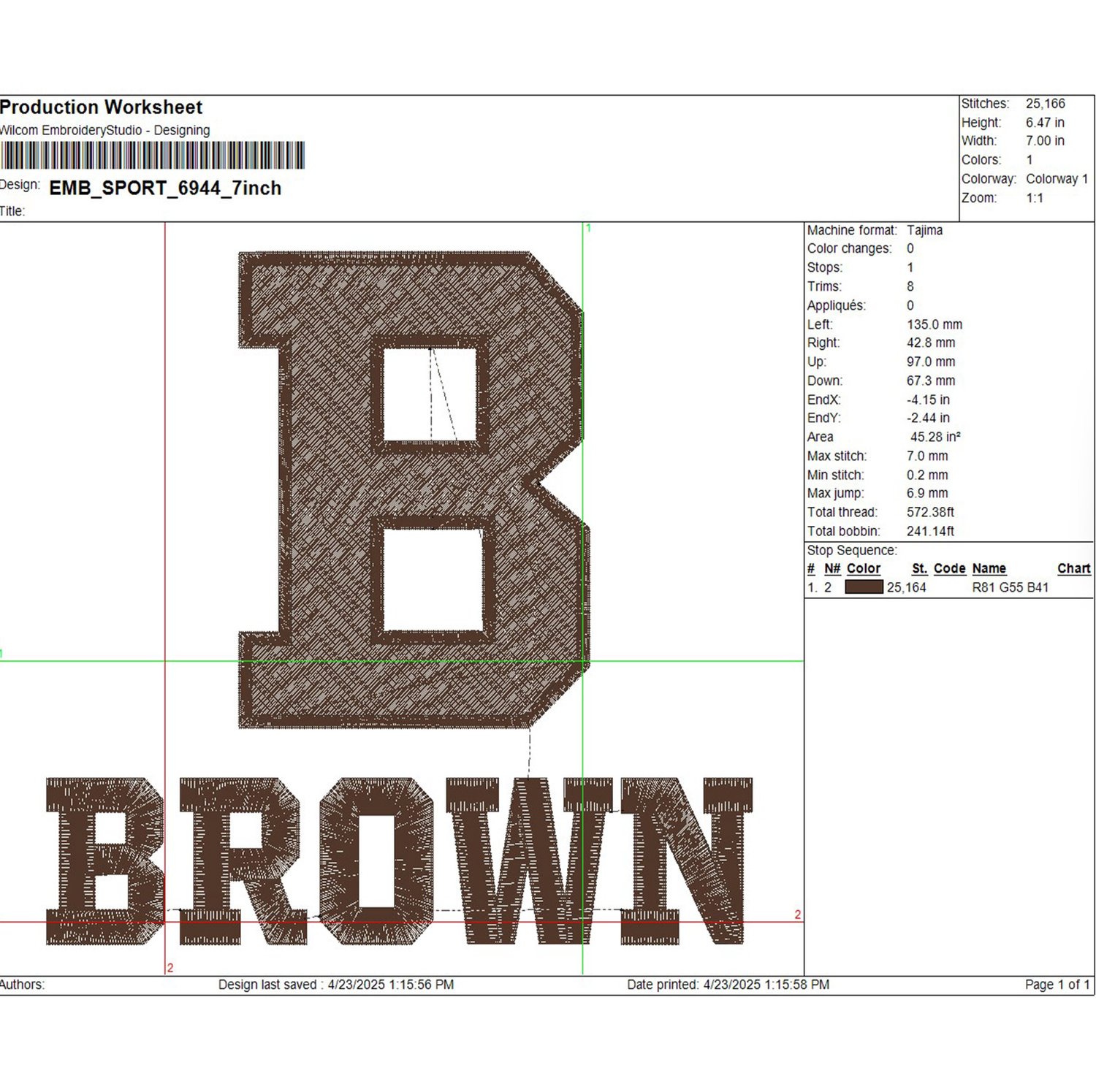 NCAA B Brown Football Team Wordmark Logo Embroidery Designs, NCAA Brown Bears Machine Embroidery Files, NCAA Logo embroidery designs, Ncaa Football Team, Digital Download